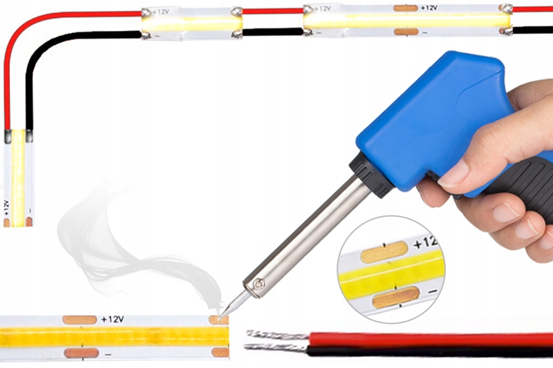 Если у вас есть больше разрезанных секций ленты, вы также можете поставить их, пайки провода в назначенных пайках