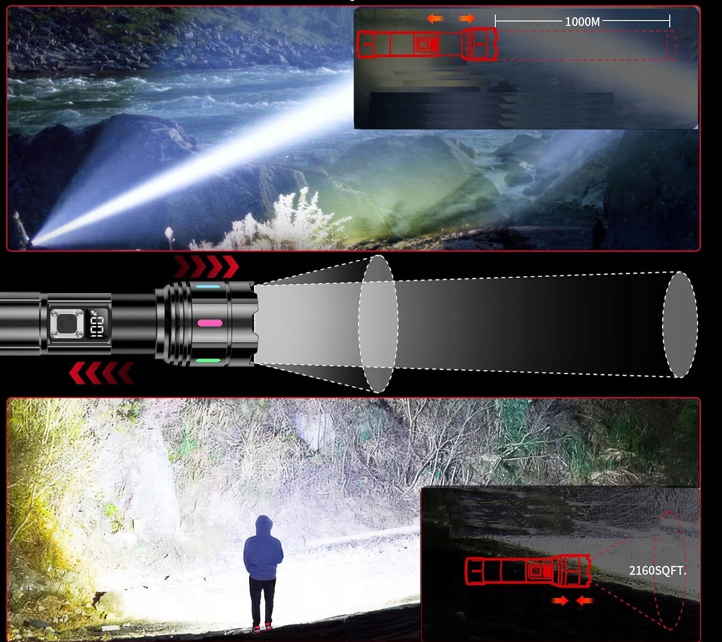 Светодиодный фонарик оснащен цифровым ЖК -дисплеем, который является революционным инновацией в истории фонариков. На первый взгляд, вы можете прочитать оставшуюся силу и своевременно зарядить ее. В связи с тем, что внутренняя структура была обновлена и оптимизирована, фонарик обеспечивает удивительное рабочее время 12 часов (низкий режим). Поставляется с зарядным кабелем C, так что вы можете заряжать свой телефон в чрезвычайной ситуации