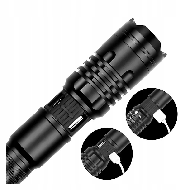 Сильный светодиодный тактический фонарик PowerBank USB Zoom