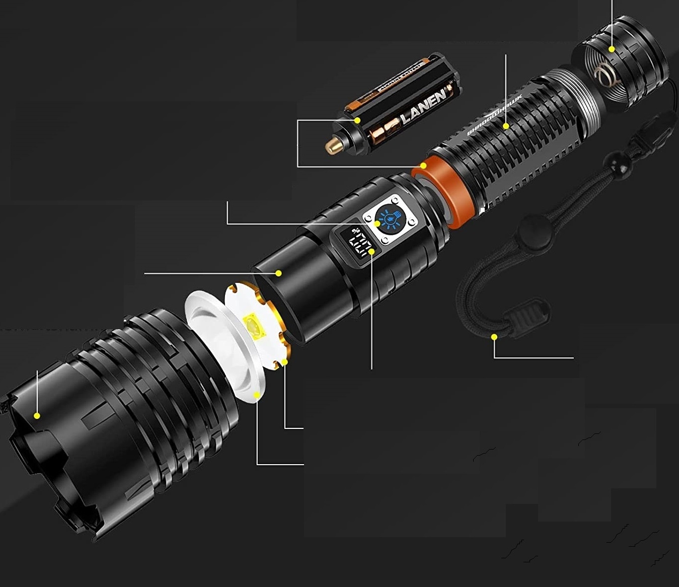 Цифровой дисплей, показывающий состояние заряда аккумулятора h1> Функция PowerBank h1> батарея и батарея h1> 20000 lumen H1> Сильная водонепроницаемая вспышка, соус для использования на открытом воздухе, в чрезвычайных ситуациях, лагеря, охоты и т. Д. Zoomu h1>