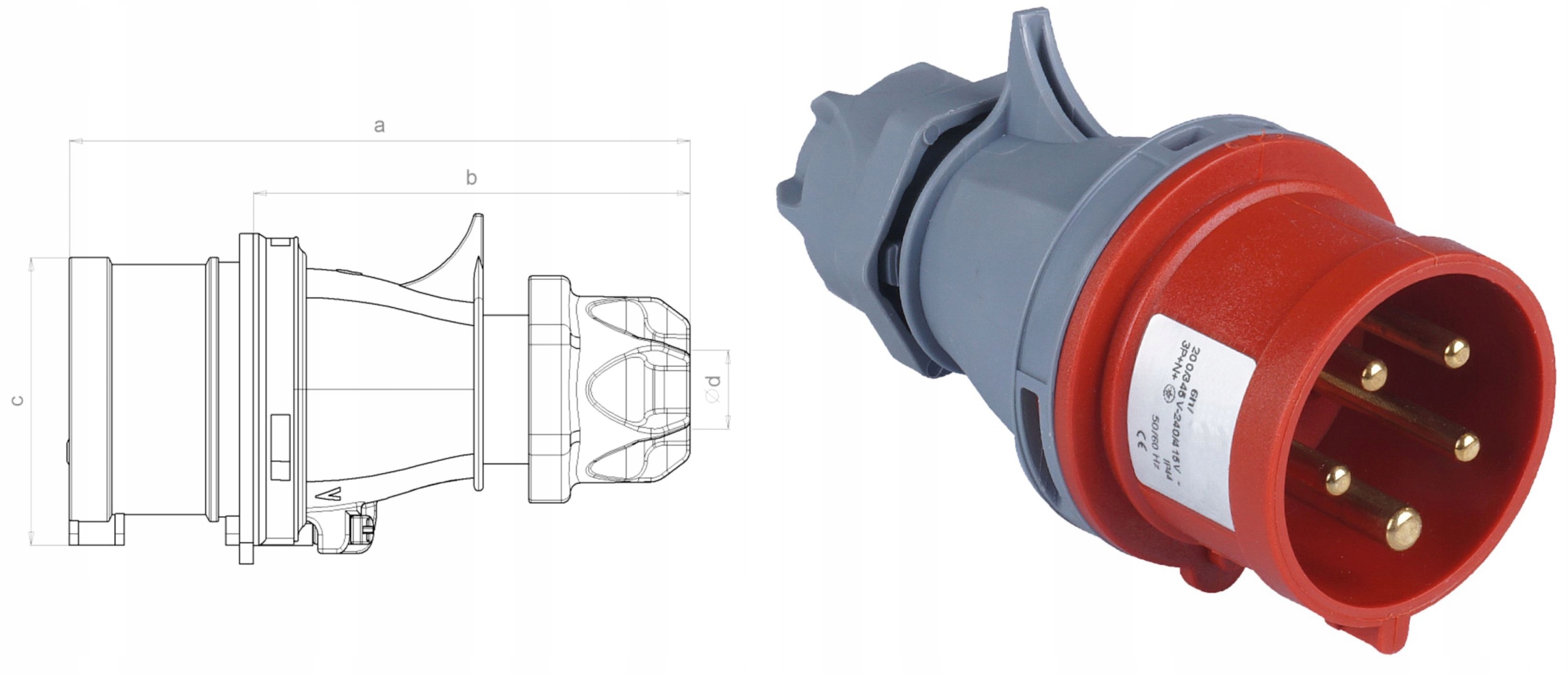 высококачественный адаптер мощности, польская производство. Адаптер из заглушки 32A 5P 400 В для сокета 16A 3P 230 В. Длина кабеля o. oxtecnal: - Плагин: 32a 5p,