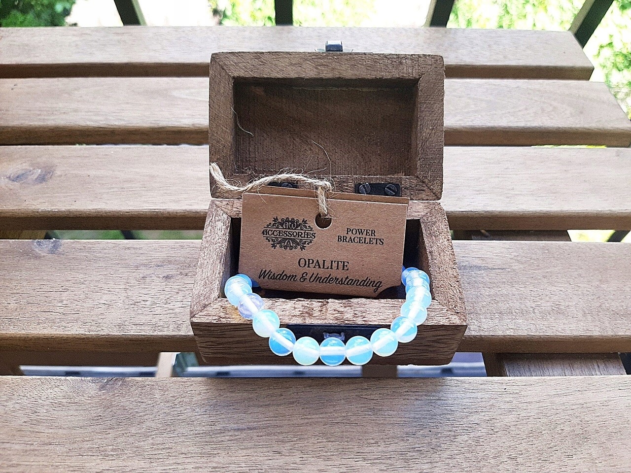 В наборе к браслету мы прикрепляем деревянную маленькую коробку / коробку, видимую на картинках. Коробка полностью сделана из дерева, имеет металлические петли и закрытие спереди.