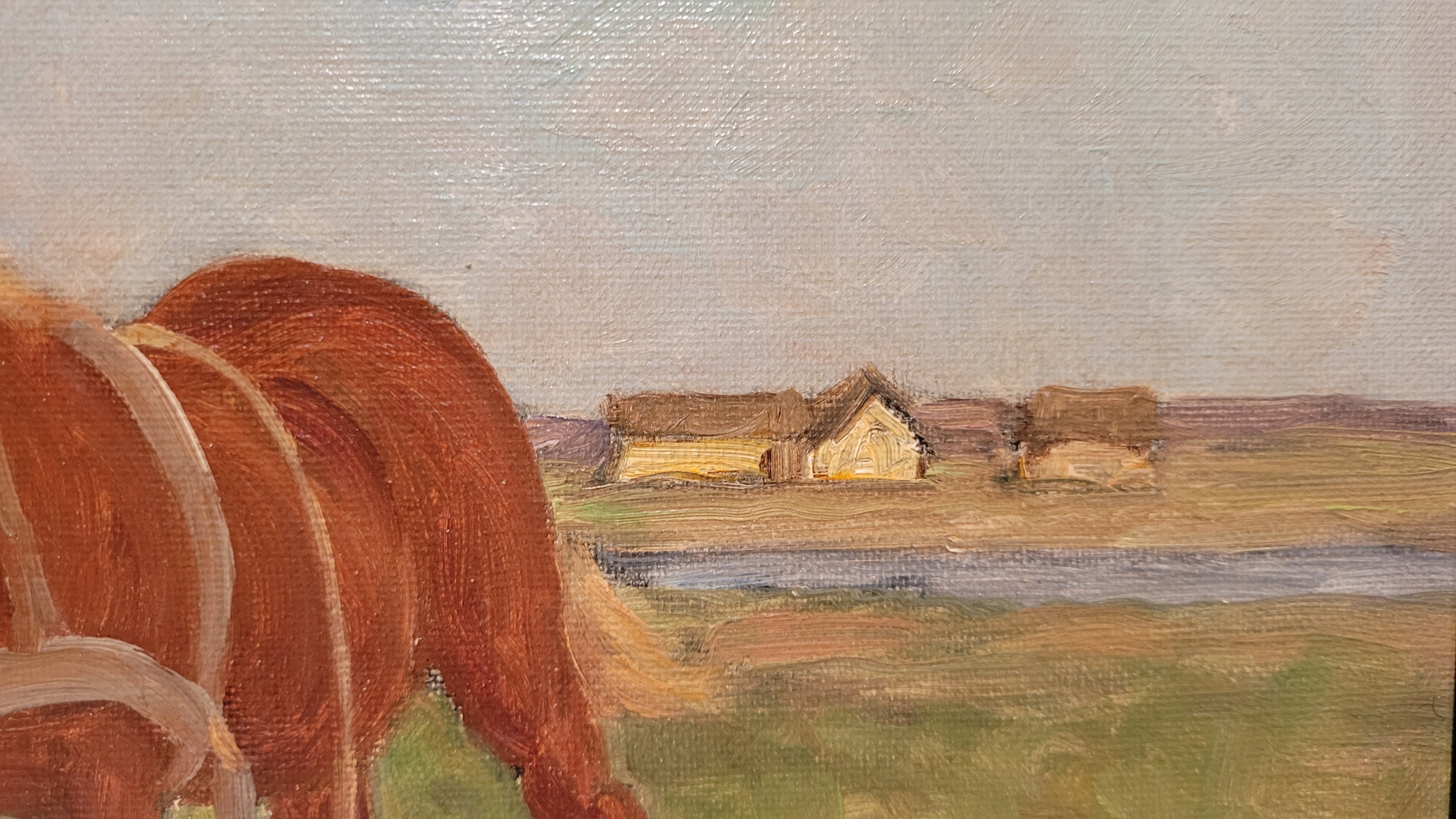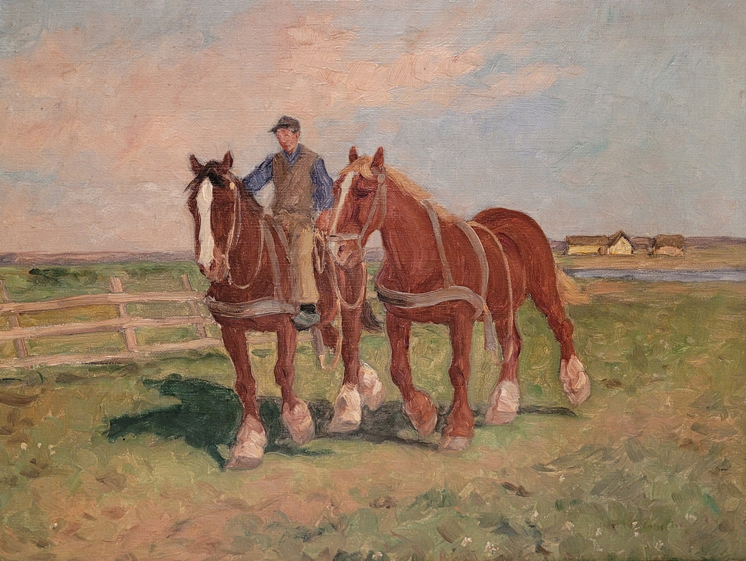 «Сельская сцена», старая, подписанная нефтяная картина.