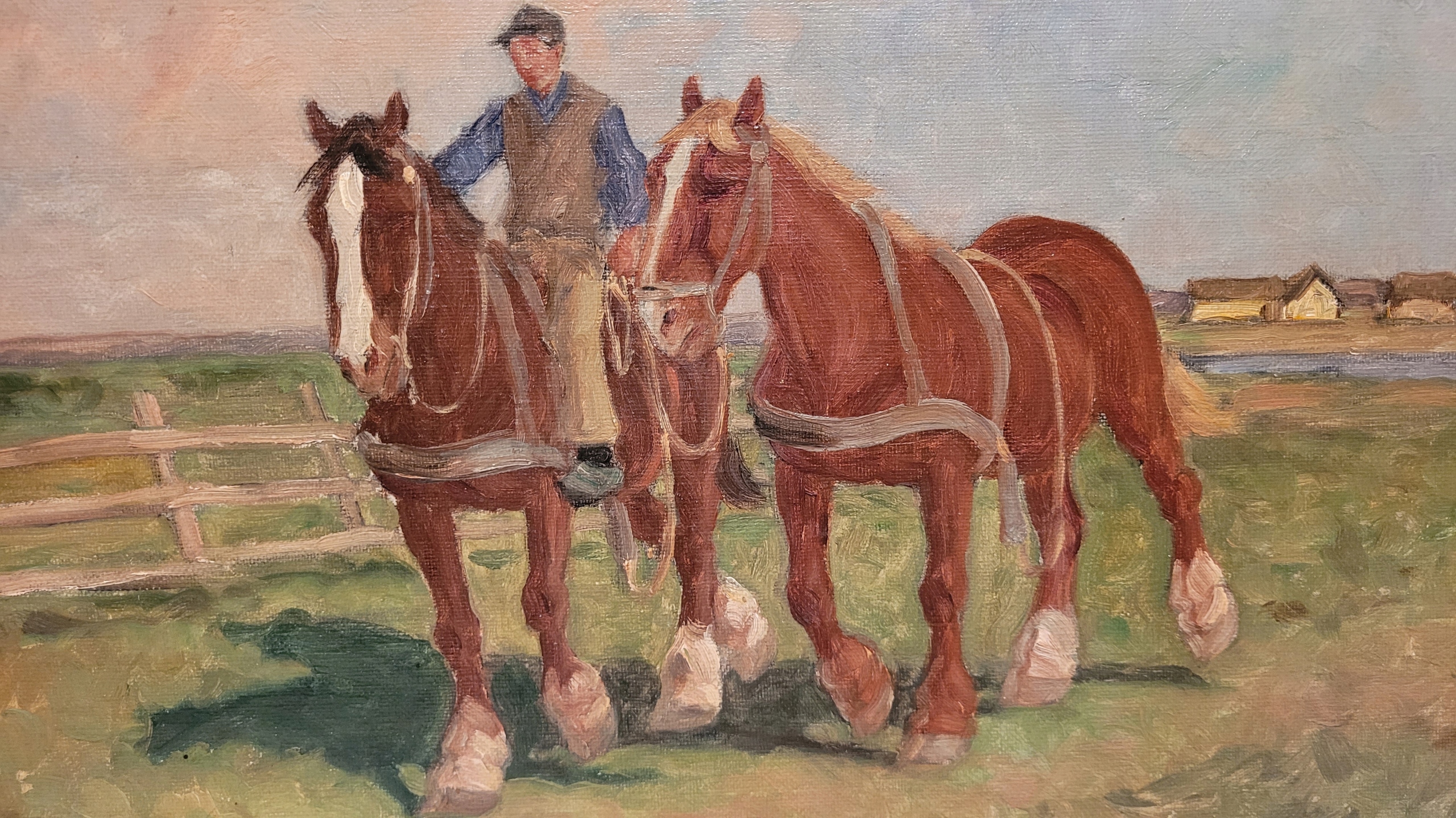 Объект продажи - красивая старая нефтяная картина "Сельская сцена".