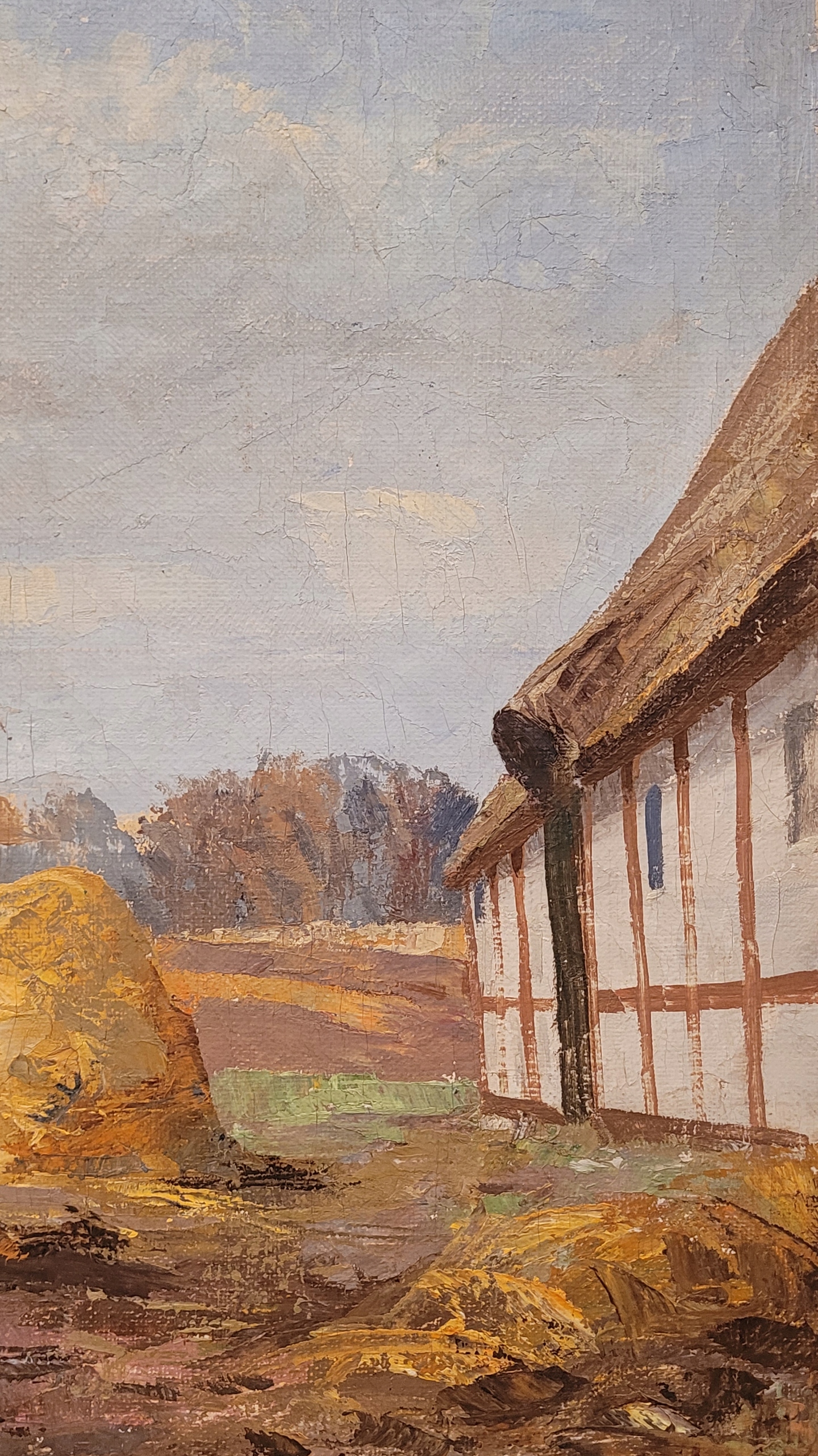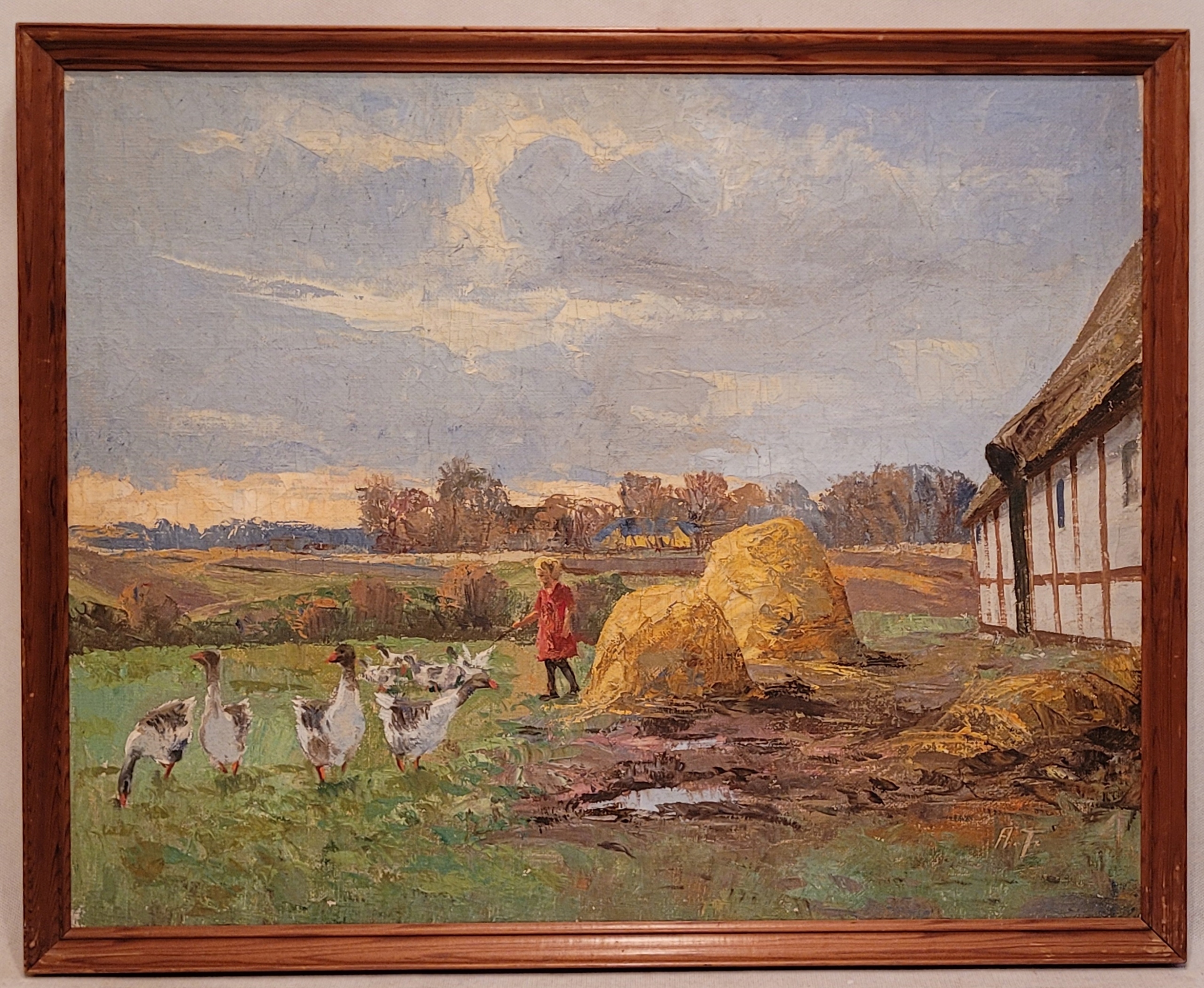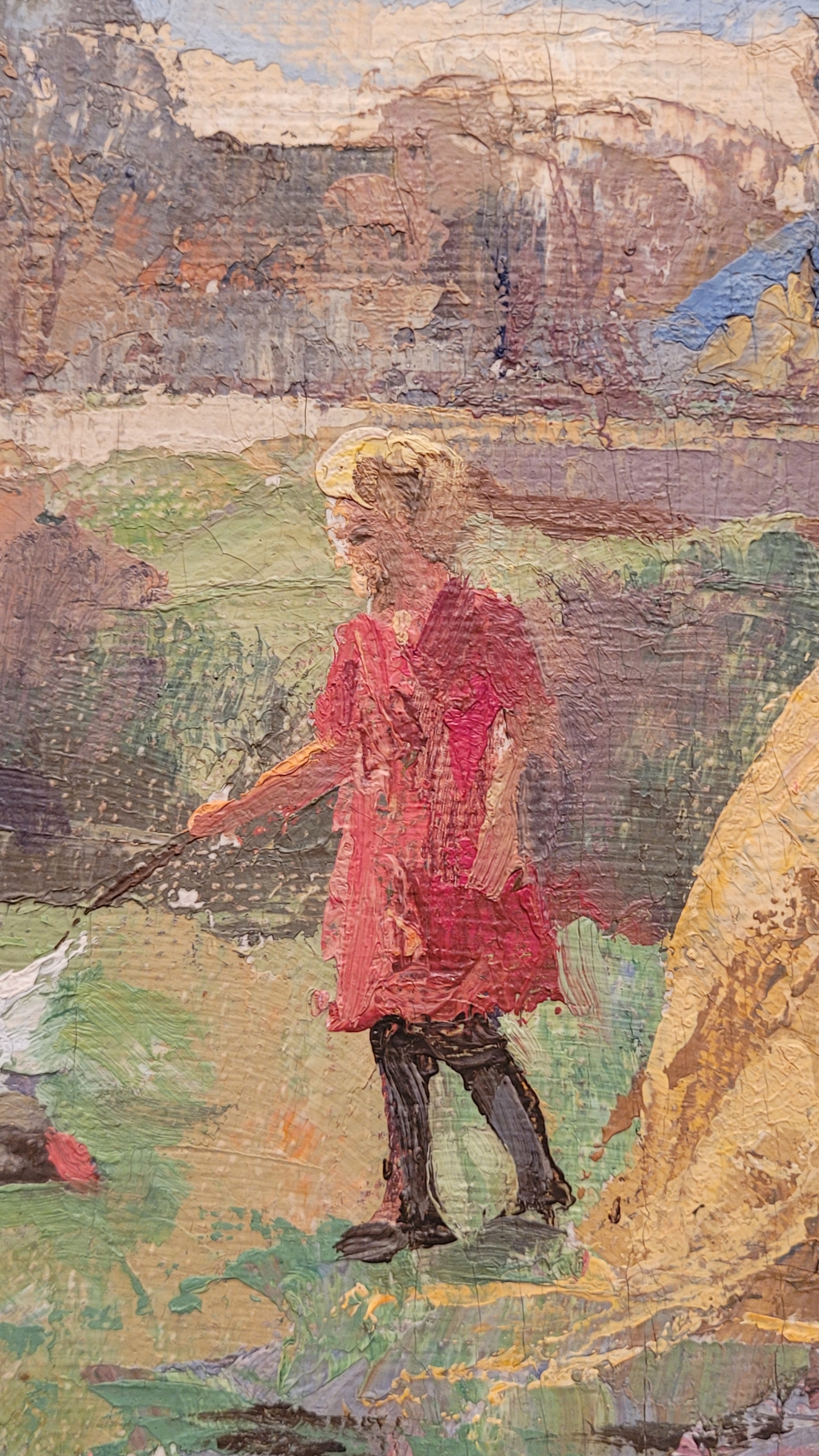"ДЕРЕВЕНСКАЯ СЦЕНА", старая, подписанная картина маслом.