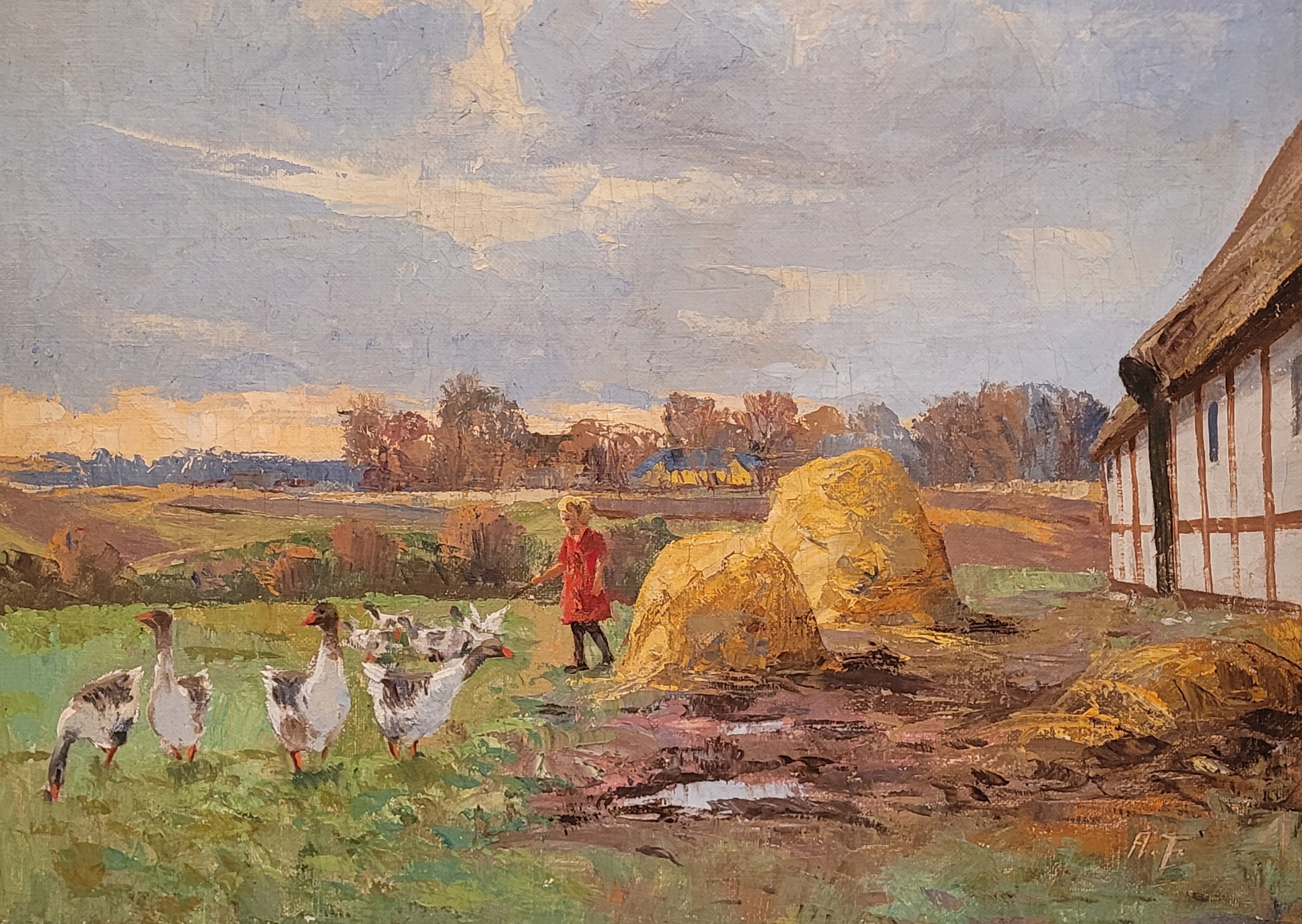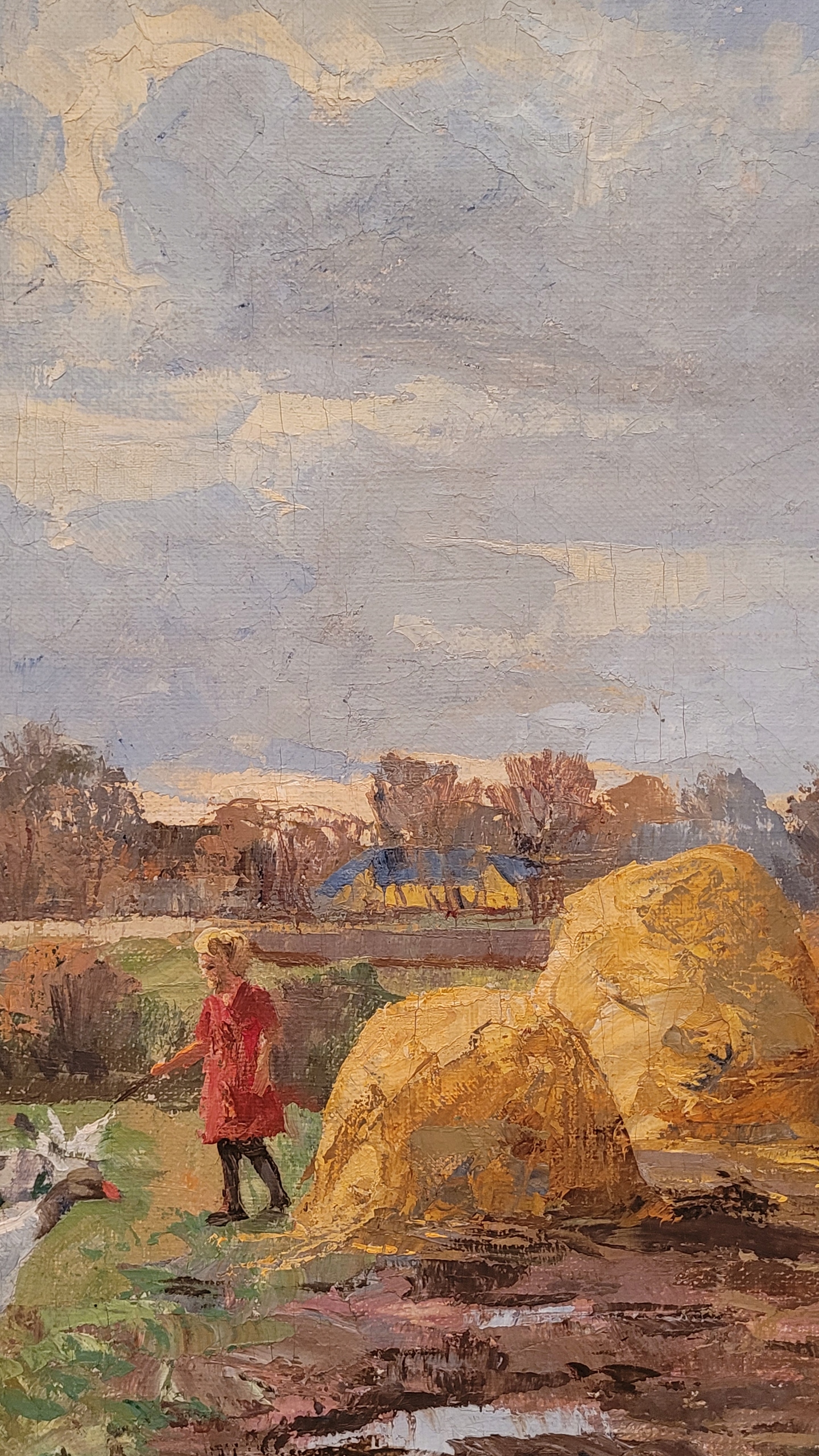 Предмет продажи - красивая, старинная картина маслом " ДЕРЕВЕНСКАЯ СЦЕНА".
