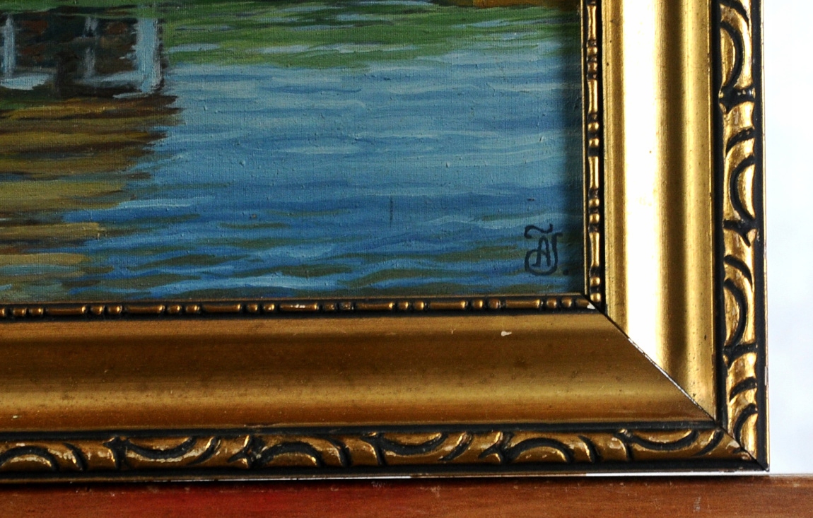 "ЗАГОРОДНЫЙ ДОМ У ВОДЫ" КРАСИВАЯ СТАРАЯ КАРТИНА МАСЛОМ!!!