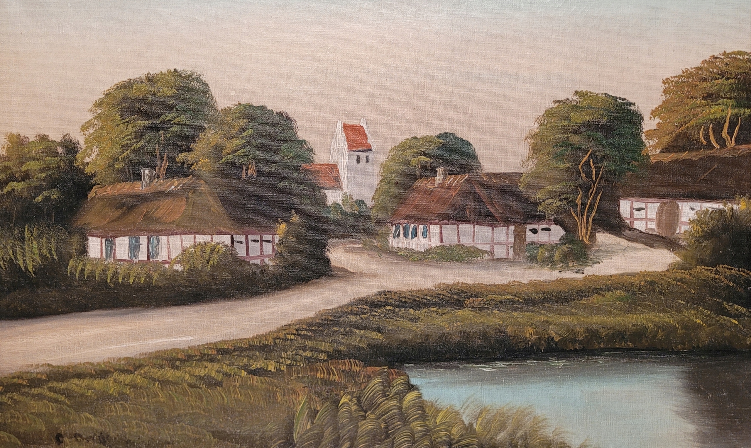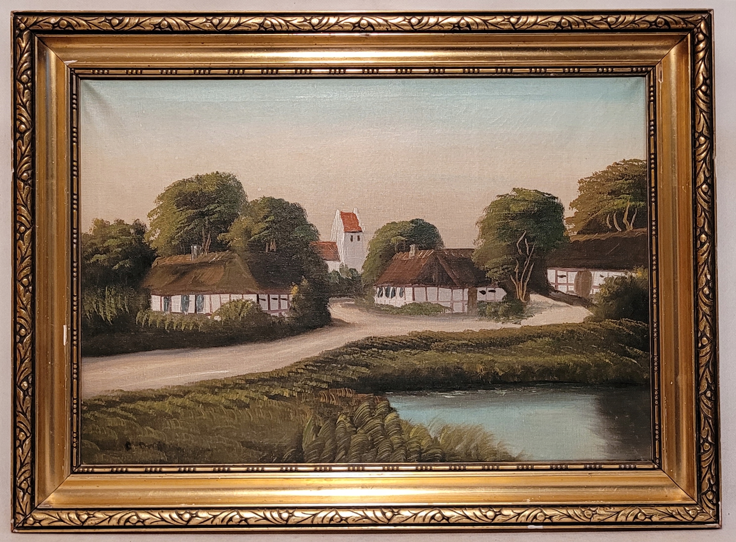 «СІЛЬСЬКИЙ ПЕЙЗАЖ», стара картина, підписана олією.