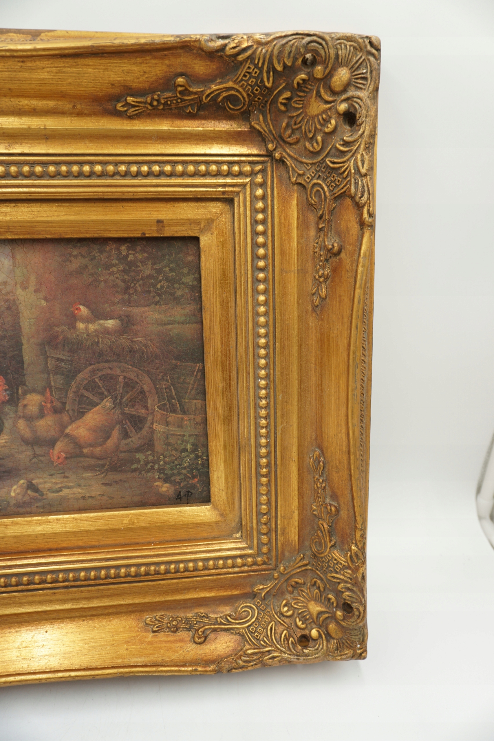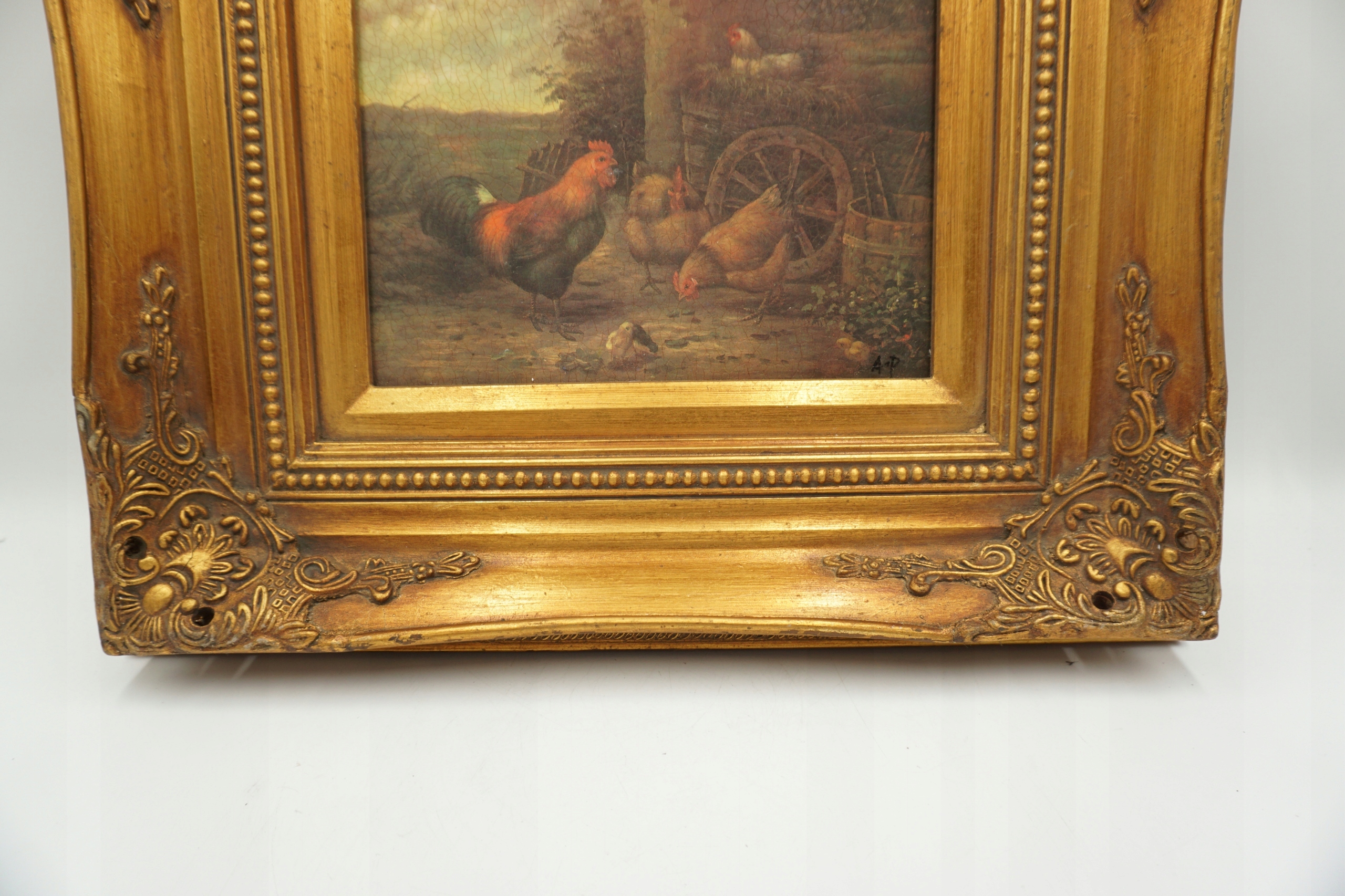 СЕЛЬСКИЙ ПЕЙЗАЖ, ЖИВОТНЫЕ, КУРИЦА - картина маслом.