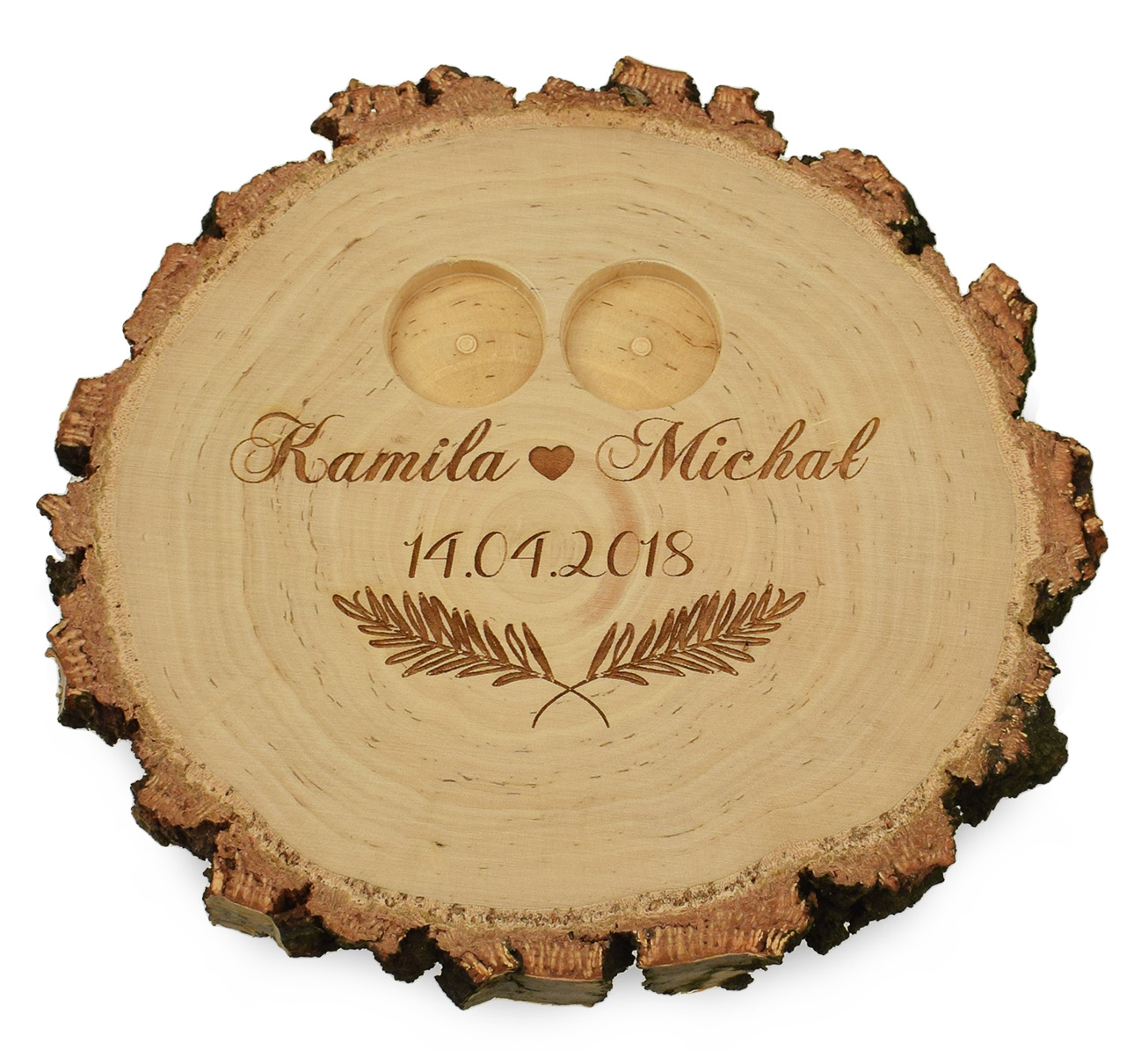 Представляем шкатулку/подставку для обручальных колец из куска натурального дерева с индивидуальной гравировкой.