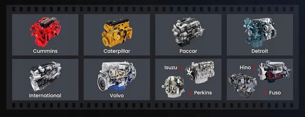 Америка: CUMMINS, США FORD, ALLISON, BENDIX, CASE CATERPILLAR, DETROIT, EATON, FREIGHTLINER, KENWORTH, MAXXFORCE, MILLER, PACCAR, PETERBILT, STERLING, WABCO, WESTERN_STAR, MACK, INTERNATIONAL, FLEXICOIL...