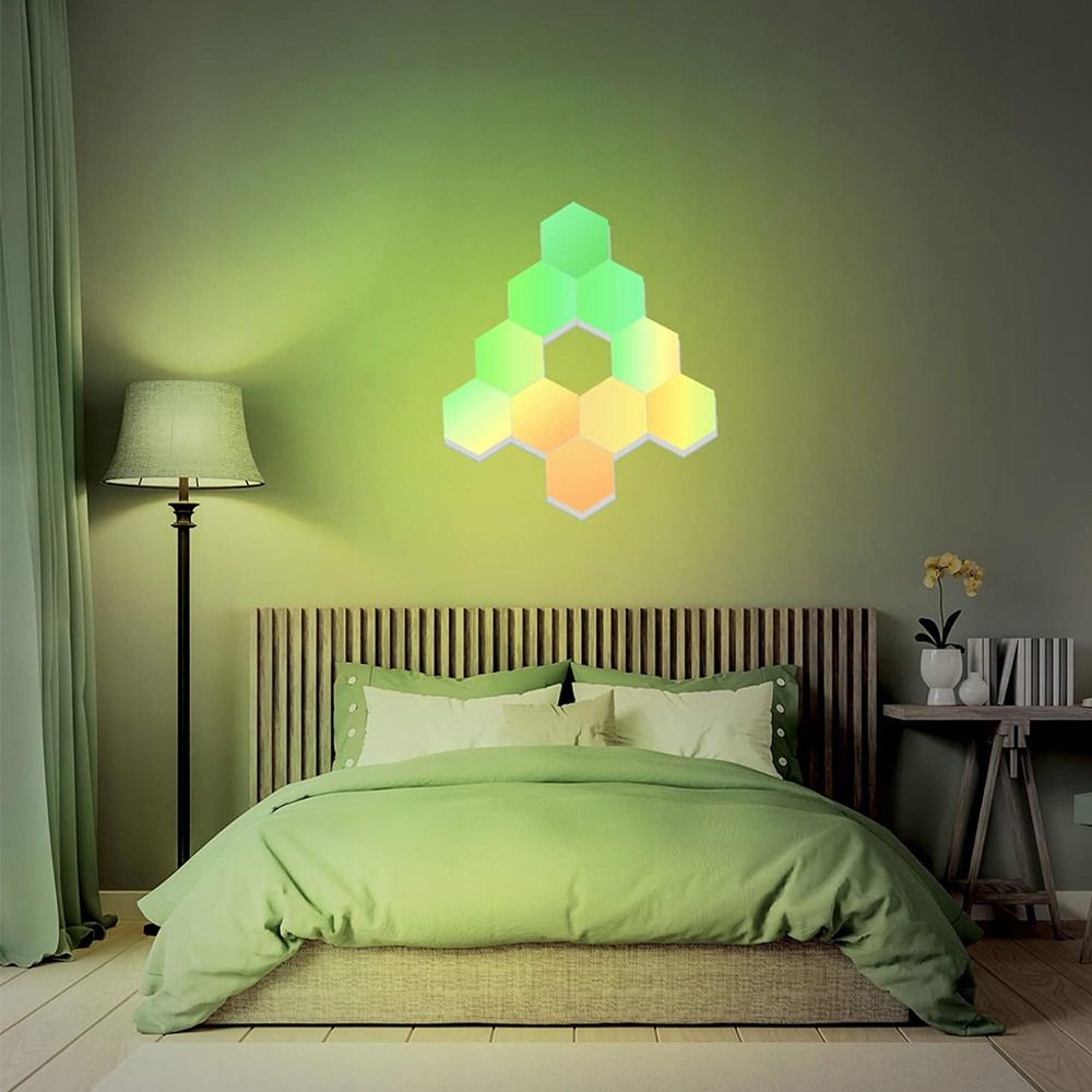СІЛЬТНИКОВА ЛАМПА HEXAGON RGB 10 ШТ. ЇЇ КОЛІР ЗМІНЮЄТЬСЯ ПІД МУЗИКУ
