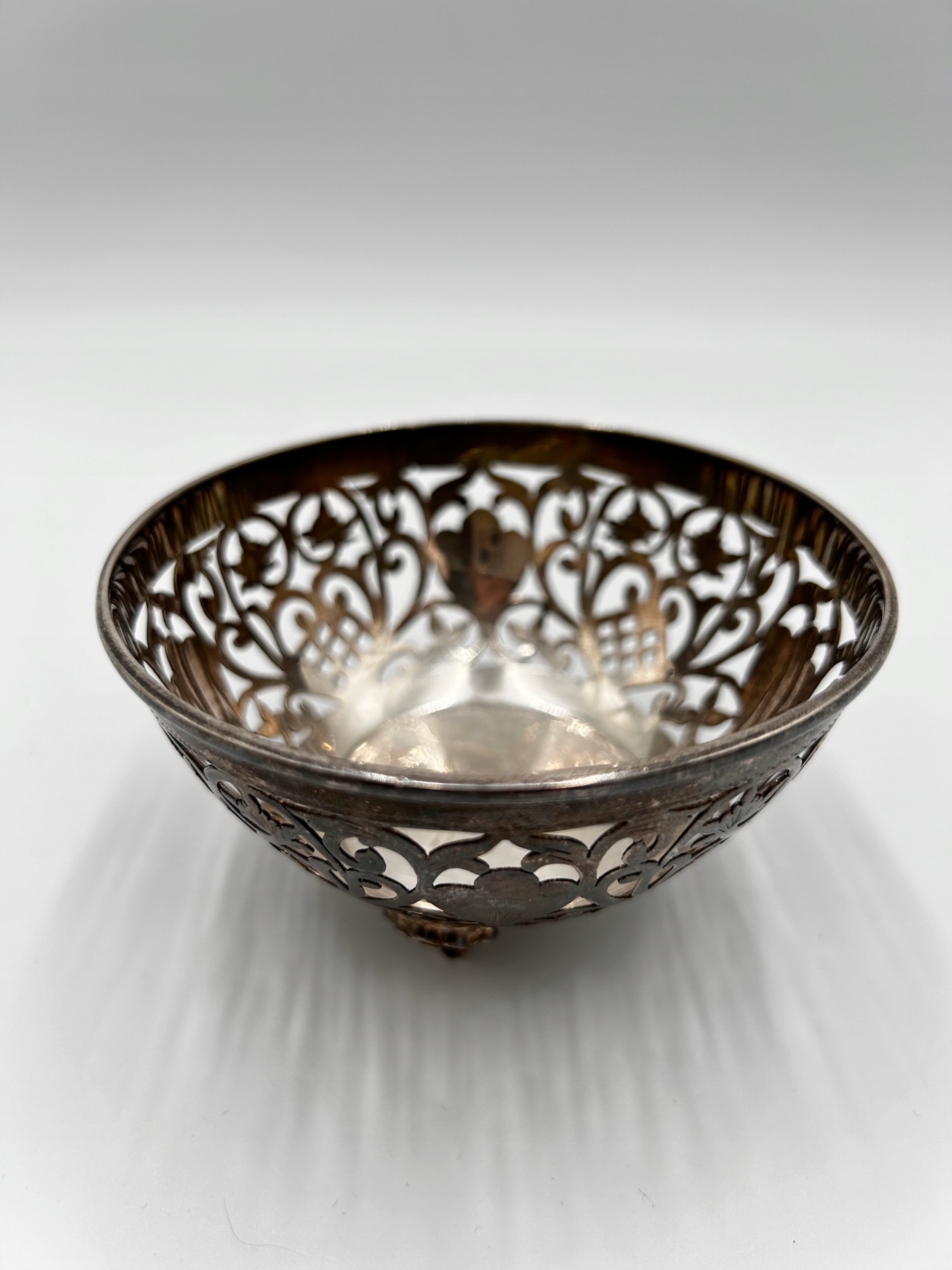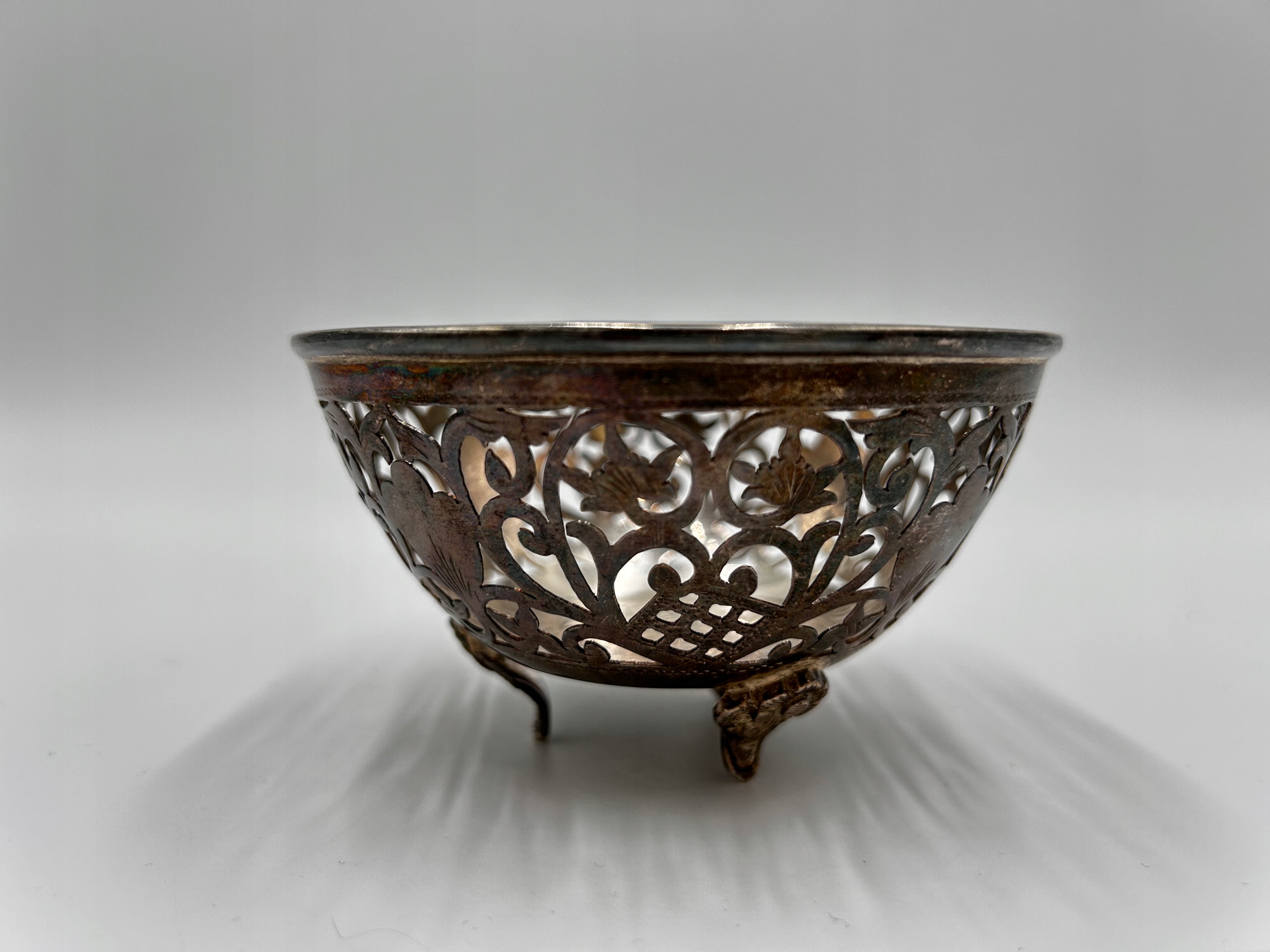 Я представляю вам элегантную открытую корзину из серебра. Богато украшенный на причудливых согнутых ногах, интерьер, украшенный гравюрой. Уникальный декоративный элемент для людей, которые ценят вечную элегантность.