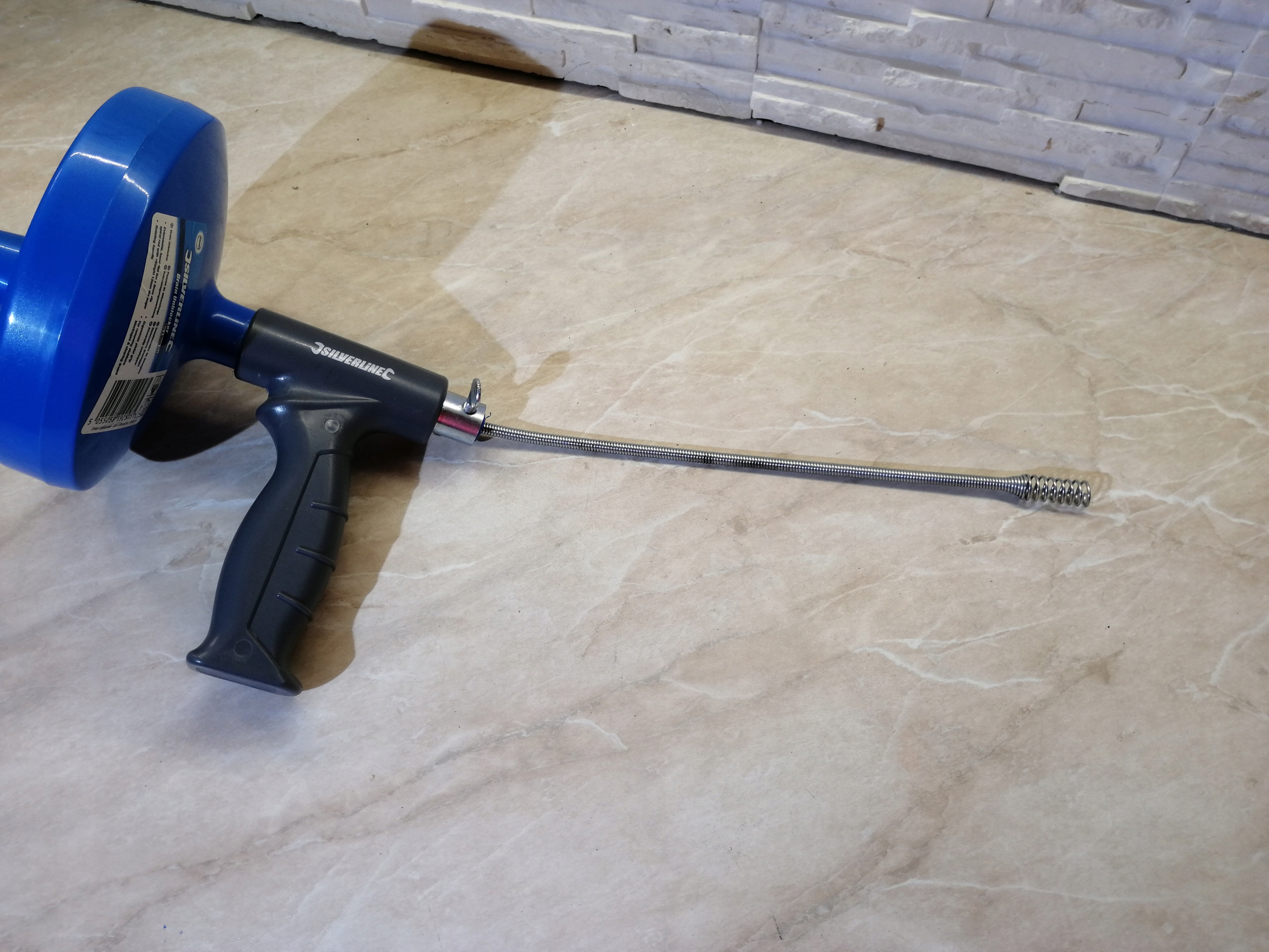 - спираль вручную вводится в дренаж и возвращается обратно в пластиковый бак.