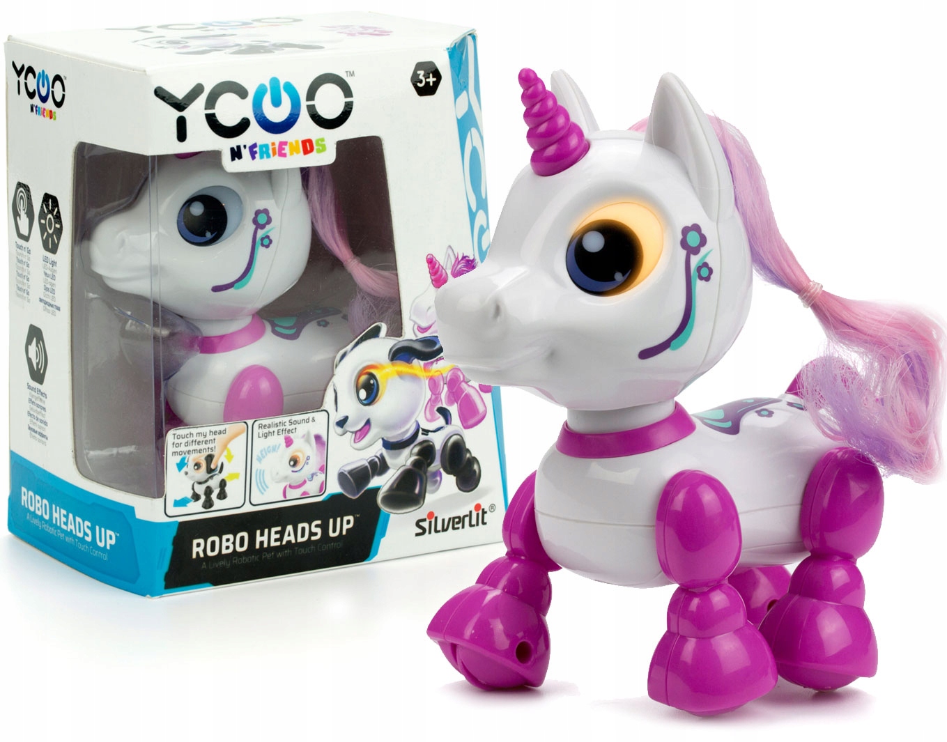 Интерактивный робот Silverlit Heads Up – Unicorn сразу очарует вас своимдвижение , яркие светодиодные глаза и милые звуковые эффекты .