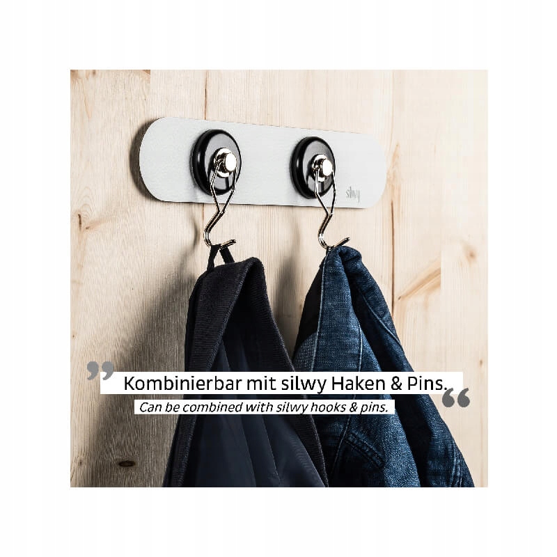 - Можно соединить с магнитными крючками и булавками Silwa (выдерживает до 10 кг)