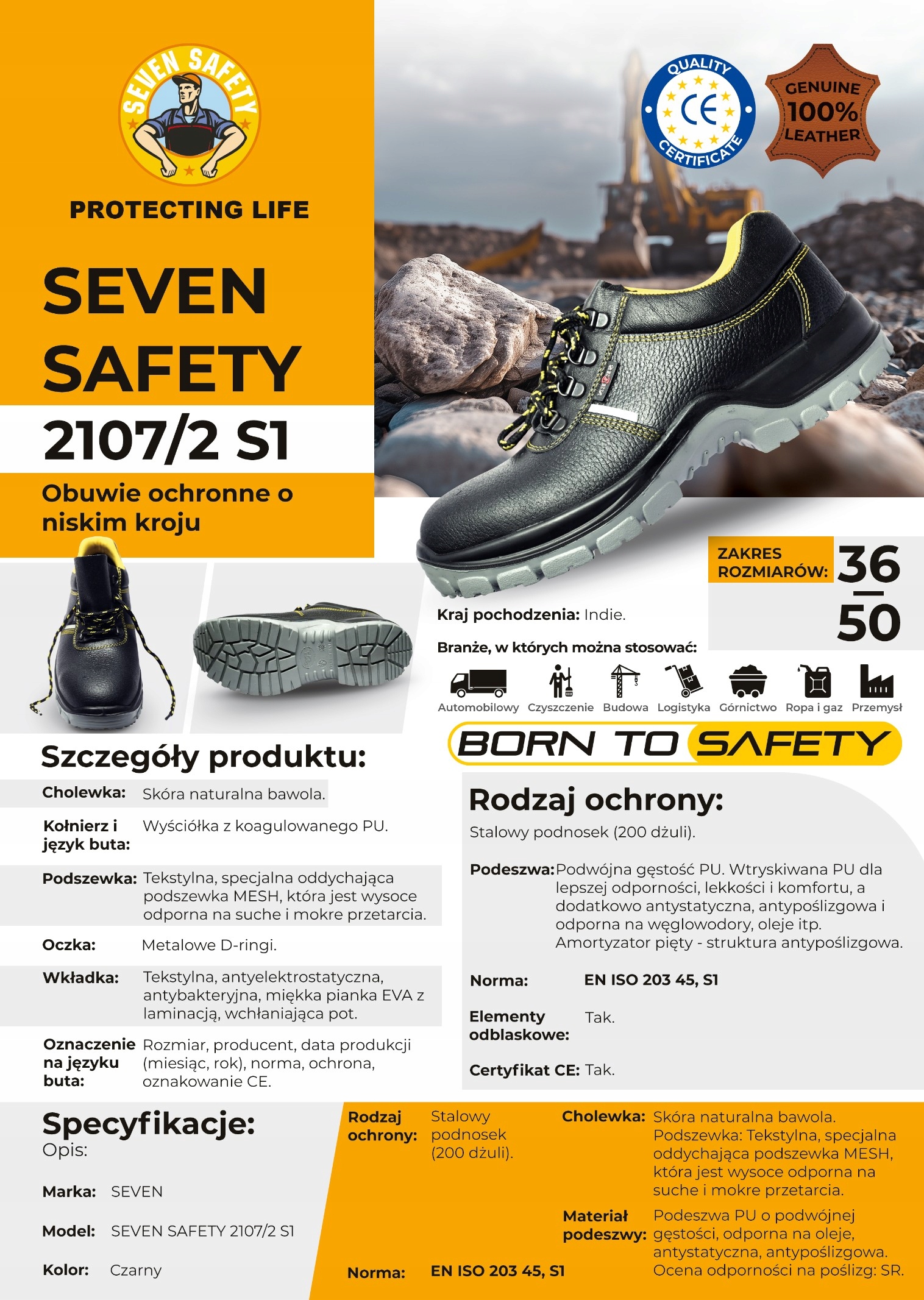 Seven Safety 2107/2 S1 Рабочая обувь универсальна и используется в широком спектре отраслей. Они идеально подходят для строительства, автомобильной промышленности, логистики, а также в секторе услуг. Благодаря их защитной недвижимости и эргономике, они являются отличным выбором для профессионалов, работающих в требовательных условиях.