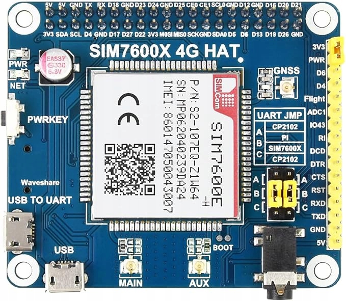 SIM7600E-H 4G HAT - модуль связи 4G 3G 2G для Raspberry Pi 4