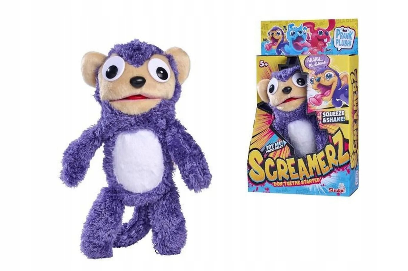 Simba Mascot Screamerz Monkey - это интерактивная игрушка, которая используется, чтобы заставить ее смеяться. Ребенок может выбрать, какой звук издает талисман.