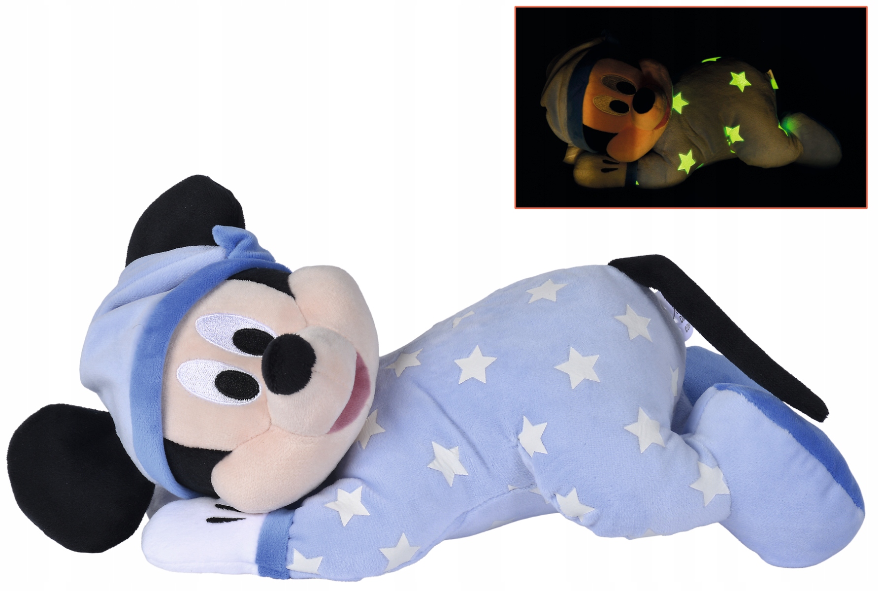 Талисман с изображением самого известного героя Диснея - Микки Маус со звездами на одежде, сияющих в темноте. Огни загораются и помогают самым молодым в мирном засыпании.