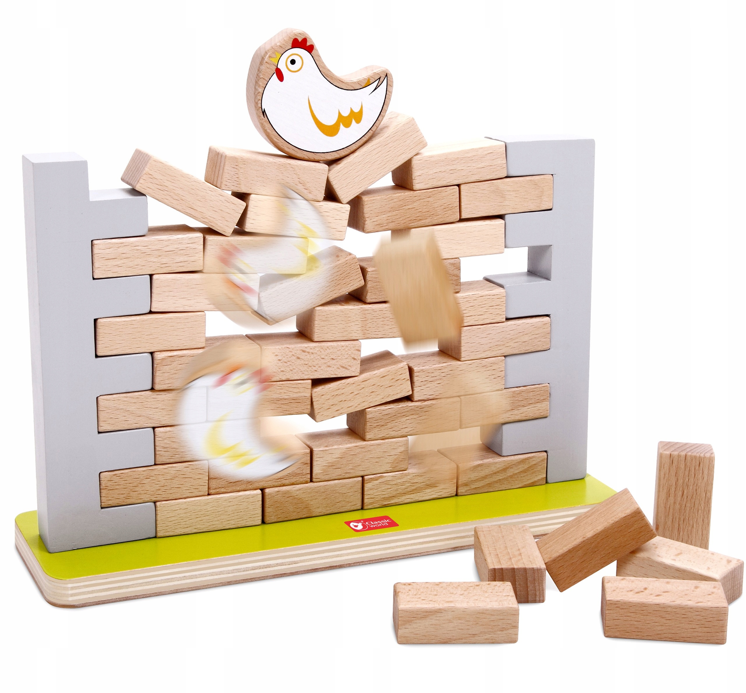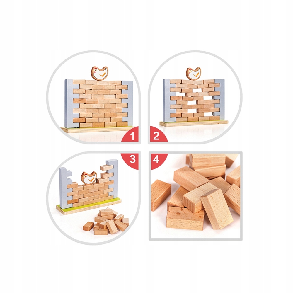 Отличная деревянная игра для всей семьи от известного бренда Classic World, простые правила, логическое мышление и веселье для людей всех возрастов – вот основные особенности этой игры. Постройте стену из специально подготовленных блоков. Поместите курицу наверх, а затем один за другим вытаскивайте кирпичи из стены. Когда стена рушится, игра заканчивается. Играя, ваш малыш научится концентрации, стратегии и решению проблем, а также улучшит координацию рук и глаз. . р>