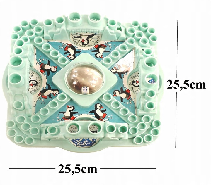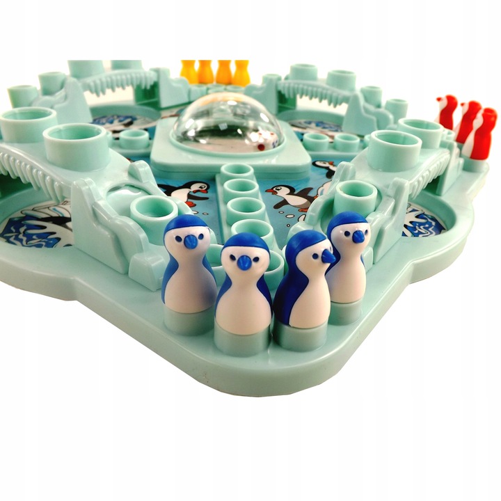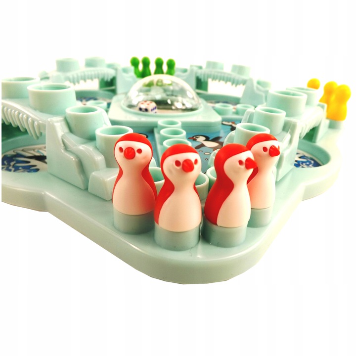 Как играть? Мосты следует расставлять на доске в соответствующем месте, перемещая подвижные вставки в мостах так, чтобы ловушки были невидимы. Каждый игроквыбирает 4 пингвинов одного цвета (желтого, красного, синего, зеленого) и размещает их в своем углу. Игра начинается с того игрока, который выкинул 6 очков. Куб замкнут в полусферу и нет страха, что он где-нибудь потеряется. Пингвины движутся по часовой стрелке на количество мест, указанное на кубике. Начинается удивительное веселье!!! За один ход каждый игрок может переместить только одного пингвина, если только каждый раз он не выкинет на кубике 6 очков. Тогда он сможет ввести в игру больше пингвинов.