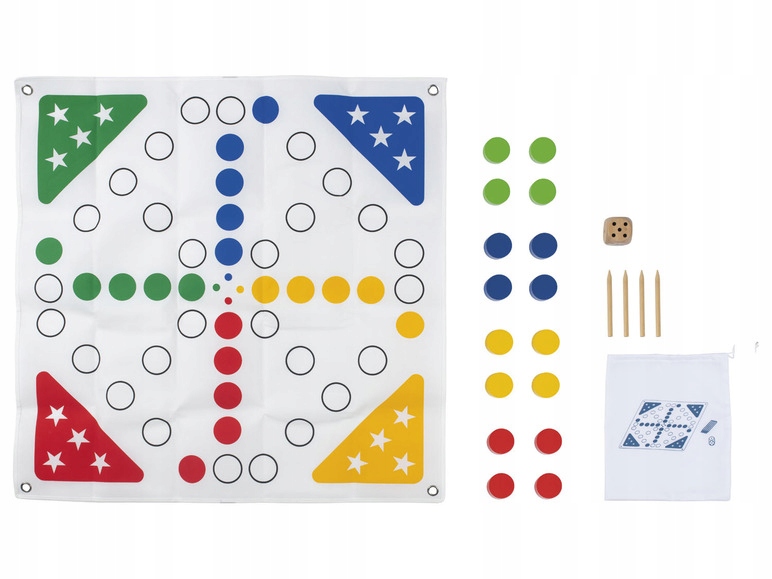 - с одним игровым полем, 4 киями, 16 игровыми фишками и одним кубиком