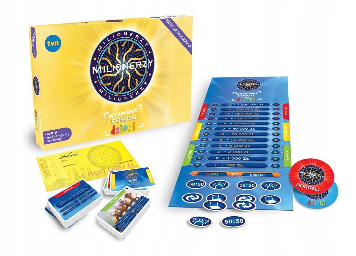 миллионеры, играющие в взрослых против детей - это динамическая настольная игра, в которой взрослые и дети соревнуются, отвечая на вопросы.