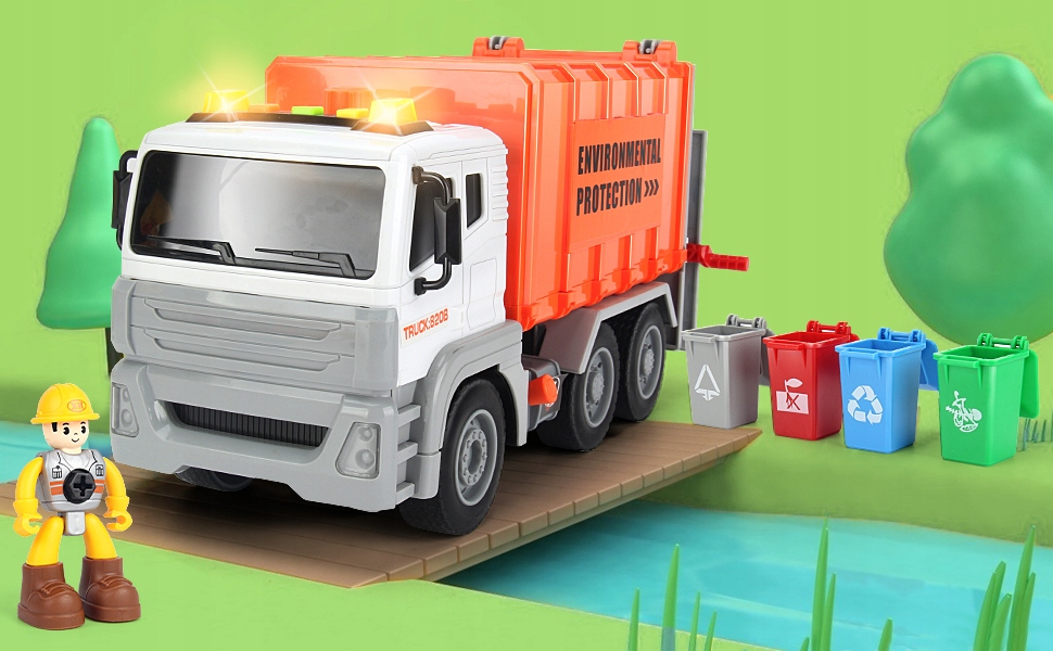 - Образовательная игрушка: благодаря широкому спектру дорожных знаков и аксессуаров, таких как знак остановки, дорожная блокада, свинцовые конусы, гидранты, деревья, предупреждающие знаки, световые сигналы, ваш ребенок научится ценить важную работу, связанную с защитой окружающей среды. Игрушка для мусора имитирует реальный мир, проезжает и очищает улицы, и в то же время веселятся. 3+.