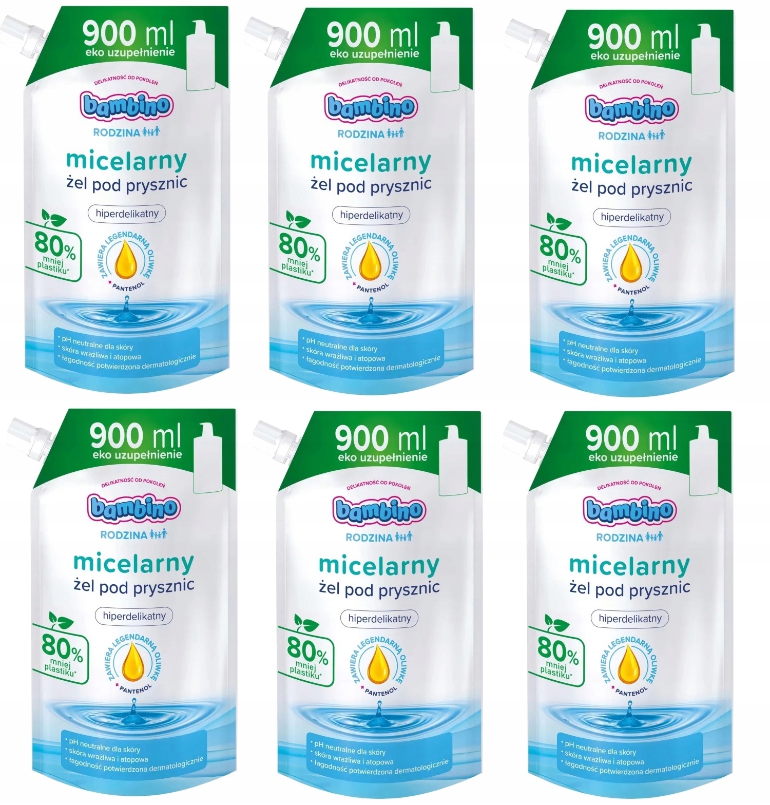 Добавление мицеллярного геля для душа Bambino емкостью 900 мл. Разработанный для использования как для родителей, так и для детей старше 3 лет является гипоаллергенным и производимым продуктом в Польше