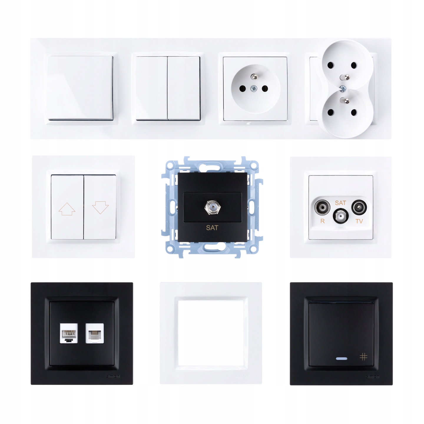 Simon 10 — экономичная модульная серия для инвестиций, где не требуются разные цвета. Два базовых цвета: белый и черный и полный набор выключателей и розеток позволят комплексно обустроить любую квартиру или офис. Отличительной особенностью этой серии является токопроводящая перемычка, изготовленная из высококачественного материала, обеспечивающая долговечность, гибкость и безопасность при монтажных работах.
