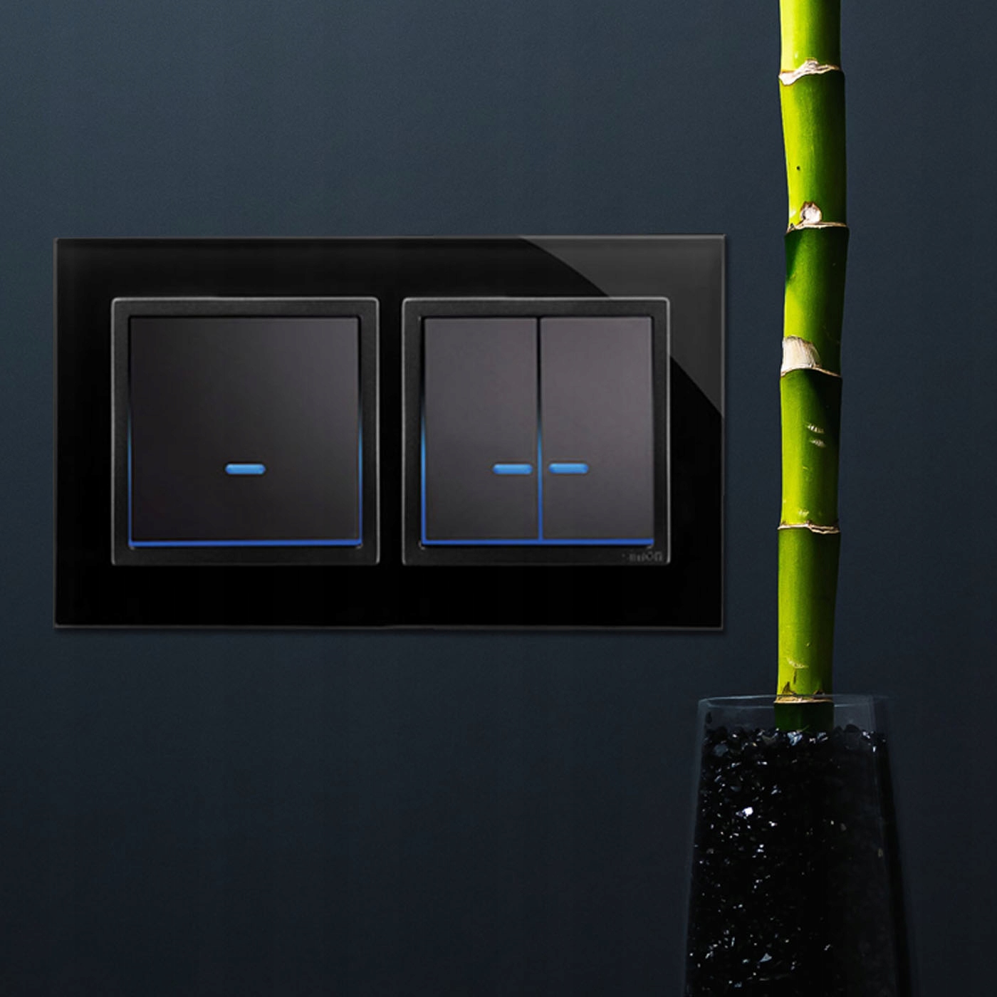 Simon 54 предлагает переключатели и кнопки с синей светодиодной подсветкой.