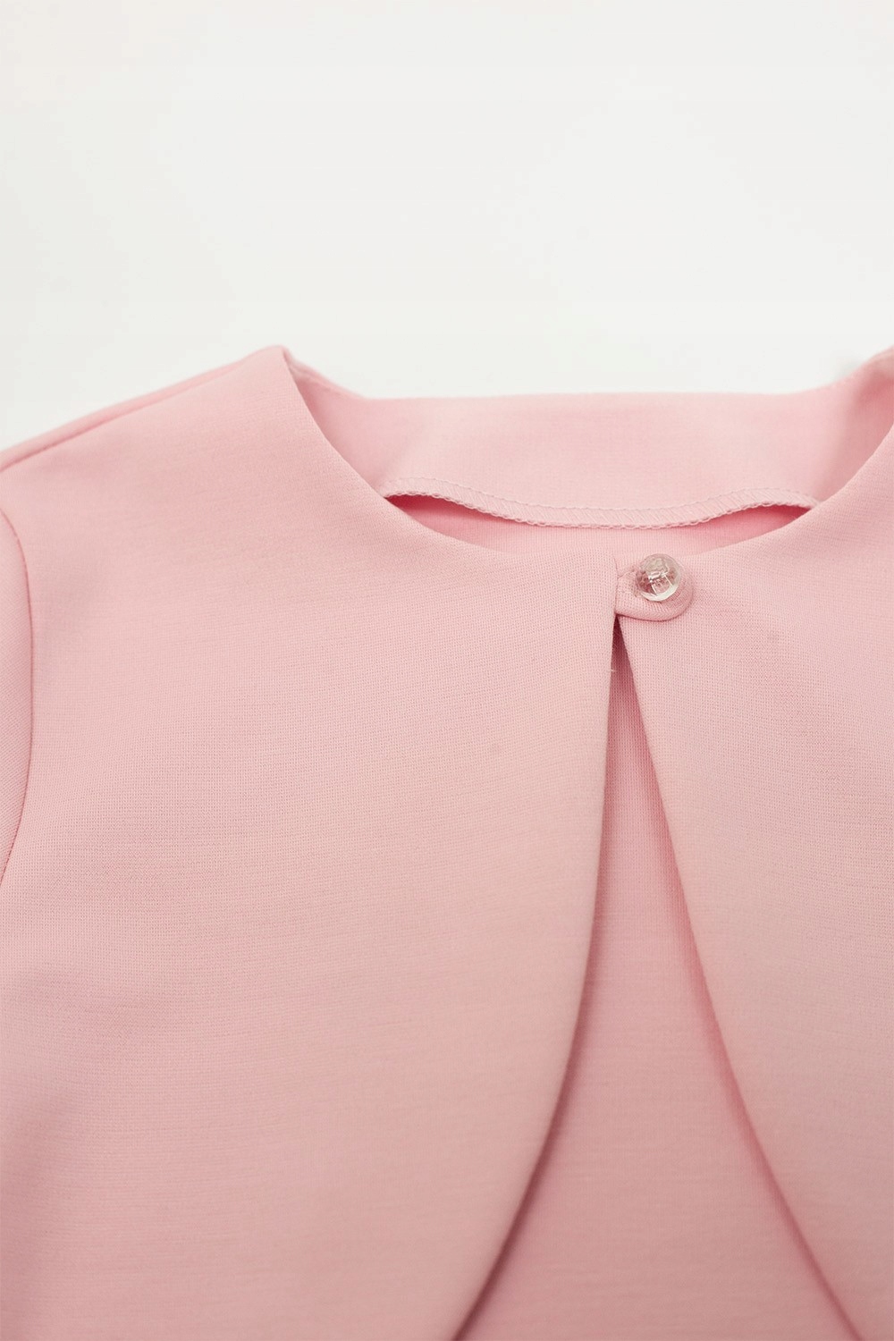 Ткань пунто, из которой изготовлено болеро, прочная и эластичная. Благодаря своей структуре не мнется.