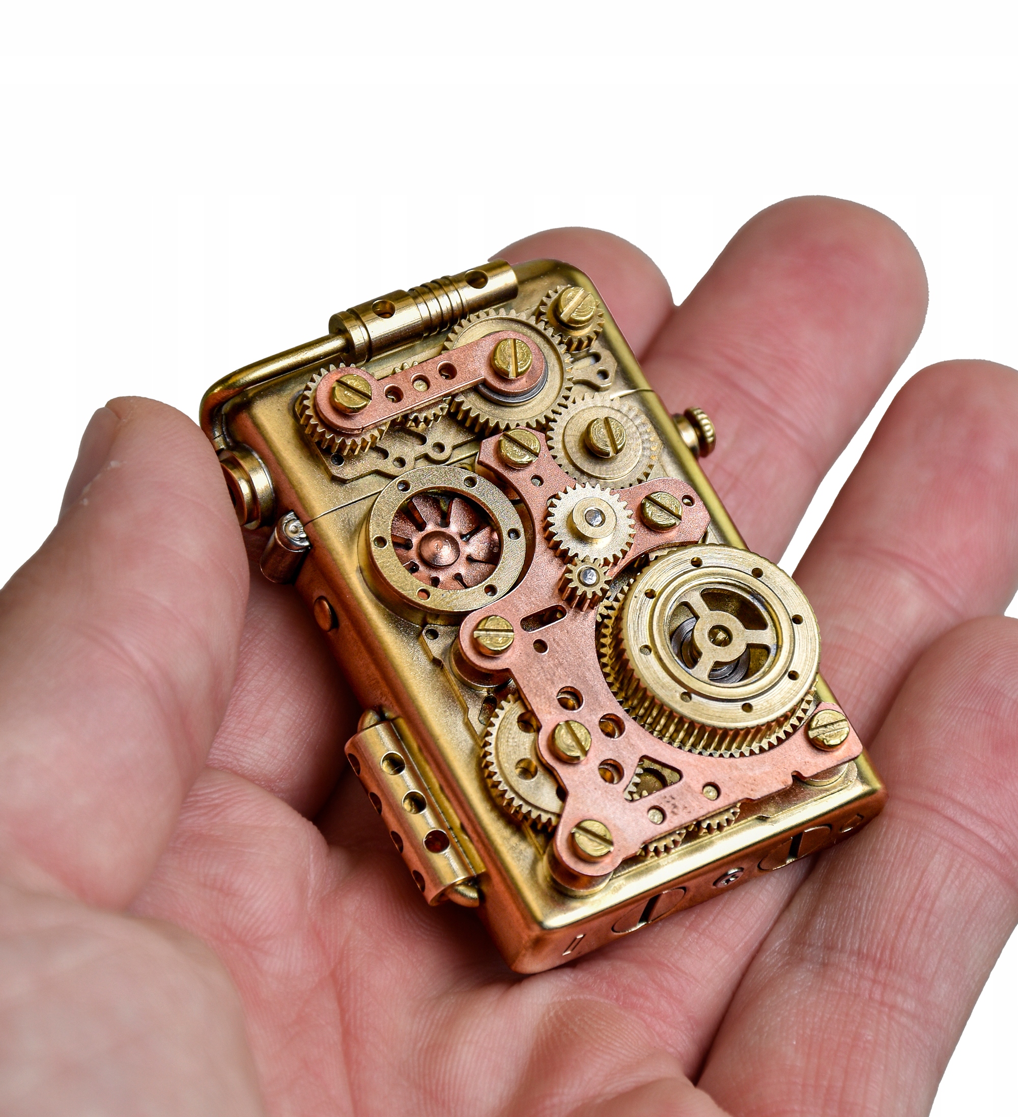 уникальный дизайн h1> - Дизайн этого зажигалки-настоящий шедевр, вдохновленный эстетикой стиля Stempunk-A, который сочетает в себе механику XIX века с футуристическим воображением. Сыпь, винты и медные плитки - это не просто украшение здесь - они создают когерентный, «рефинированная ручная композиция , которая выглядит как эксцентричный изобретатель, удаленный из лаборатории. Каждая деталь имеет свой собственный характер: от микроскопических винтов, которые вращаются, когда зажигалка начинается, к осторожному чистоту текстуры металла, который дает эффект износа и историю. - Идеально для тех, кто любит предметы с душой