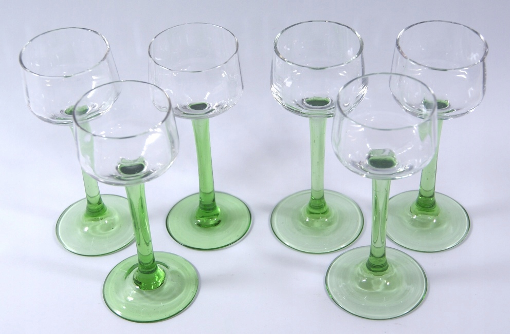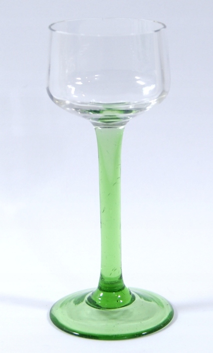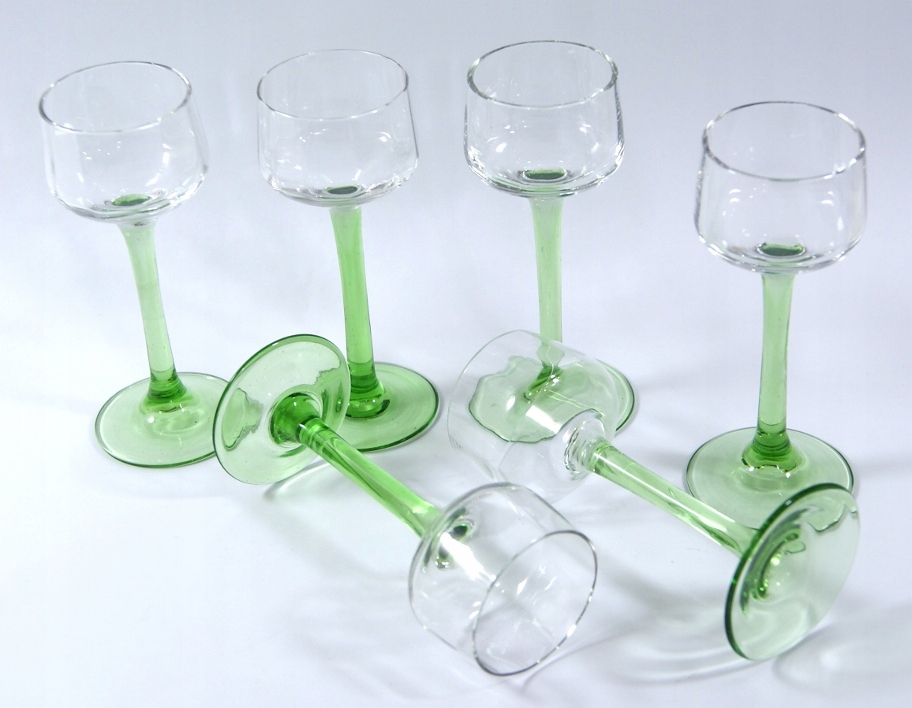 Красивые, старые очки - полный набор из 6 штук, изготовлены из бесцветного и зеленого хрустального стекла, красивых, канельских мисок.