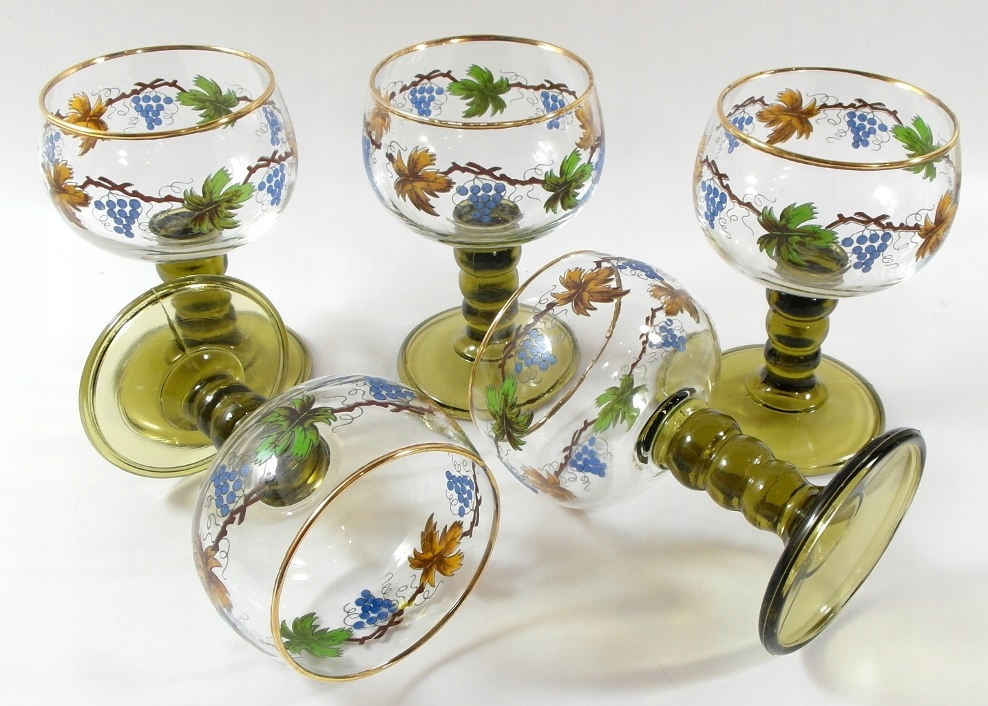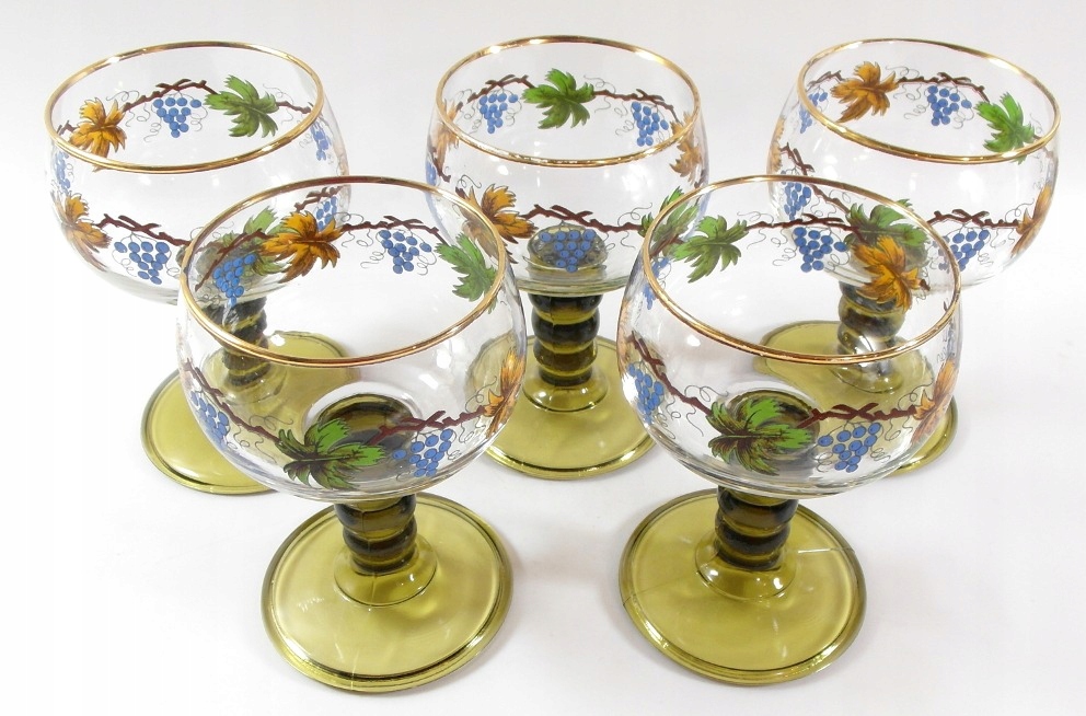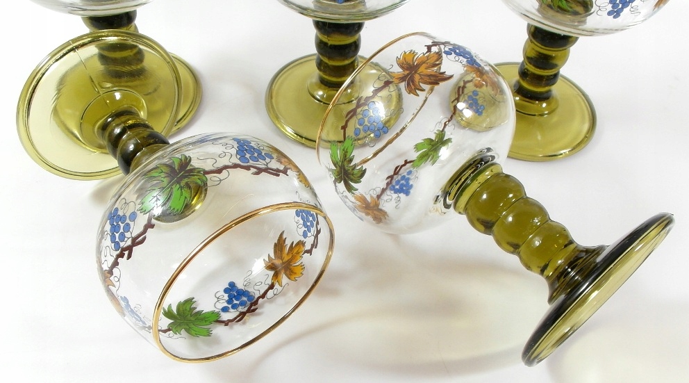 Красивые, старые очки - набор из 5 штук, оригинальные перезаписыватели из бесцветного и зеленого хрустального стекла, украшенный позолочкой.