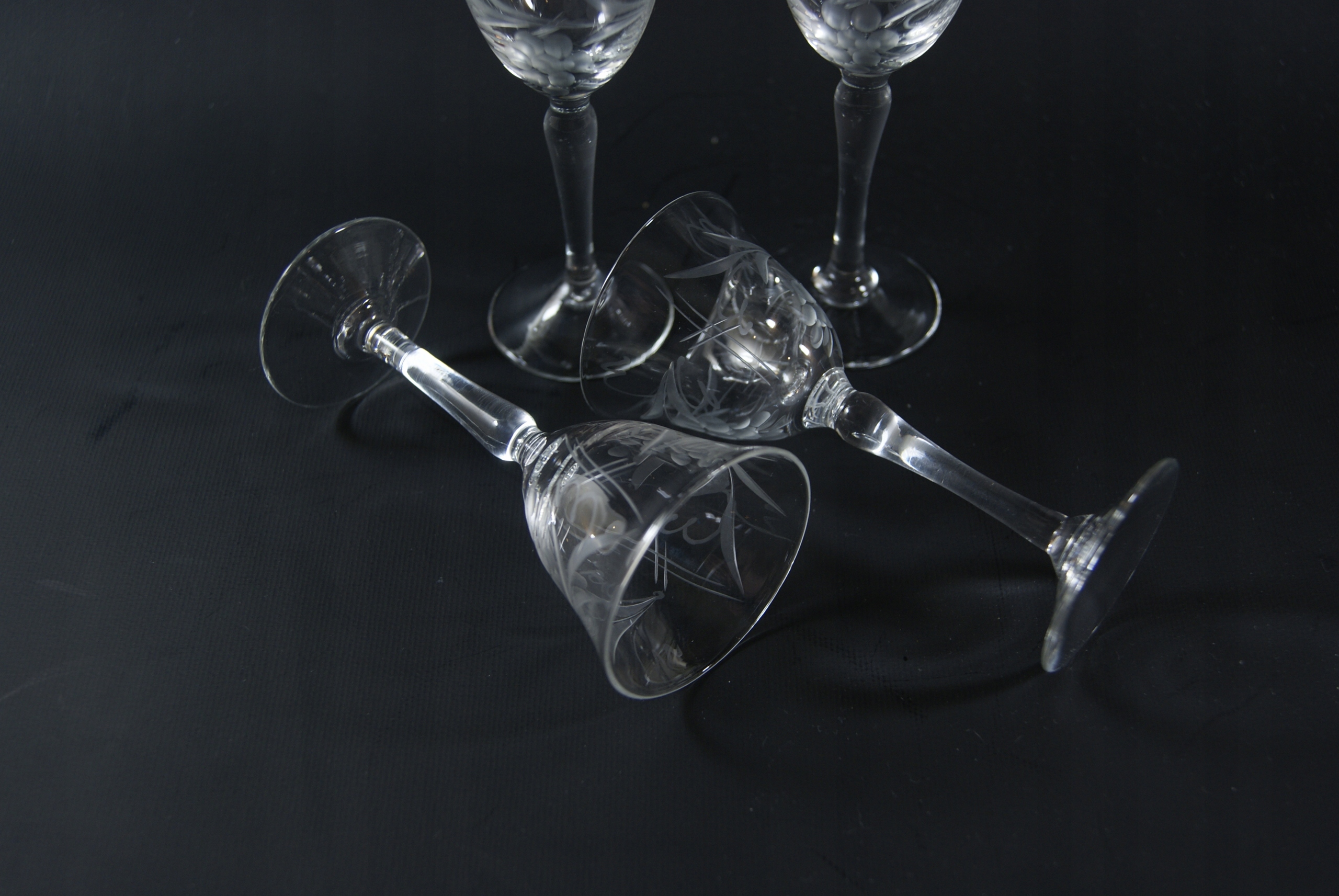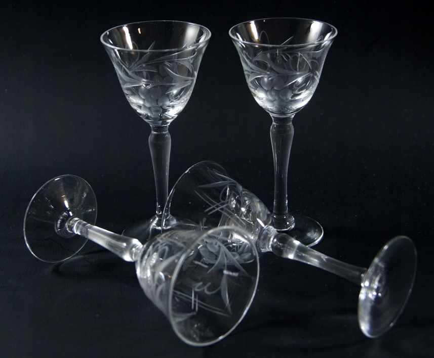 Красивые, старые очки- набор из 4 штук, изготовленный из бесцветного хрустального стекла, отшлифованный рисунок.