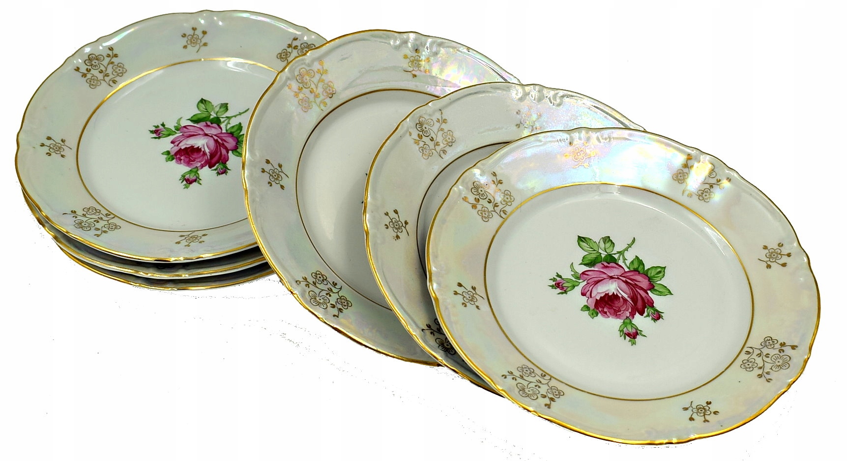 старые пластины , сделанные из фарфора. набор из 6 штук тарелки красиво оформлены, редки и единственные в Аллегро !!! Широкие ряды раздражены и позолочены.
