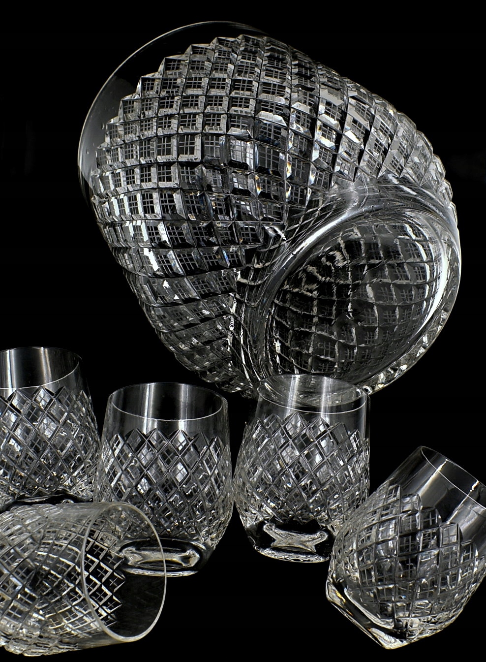 довольно старая, тяжелая боль и 5 очков , набор изготовлен из толстого, бесцветного хрустального стекла - все элементы частично измельчаются ... как танкер. Инфузия 6,5 см