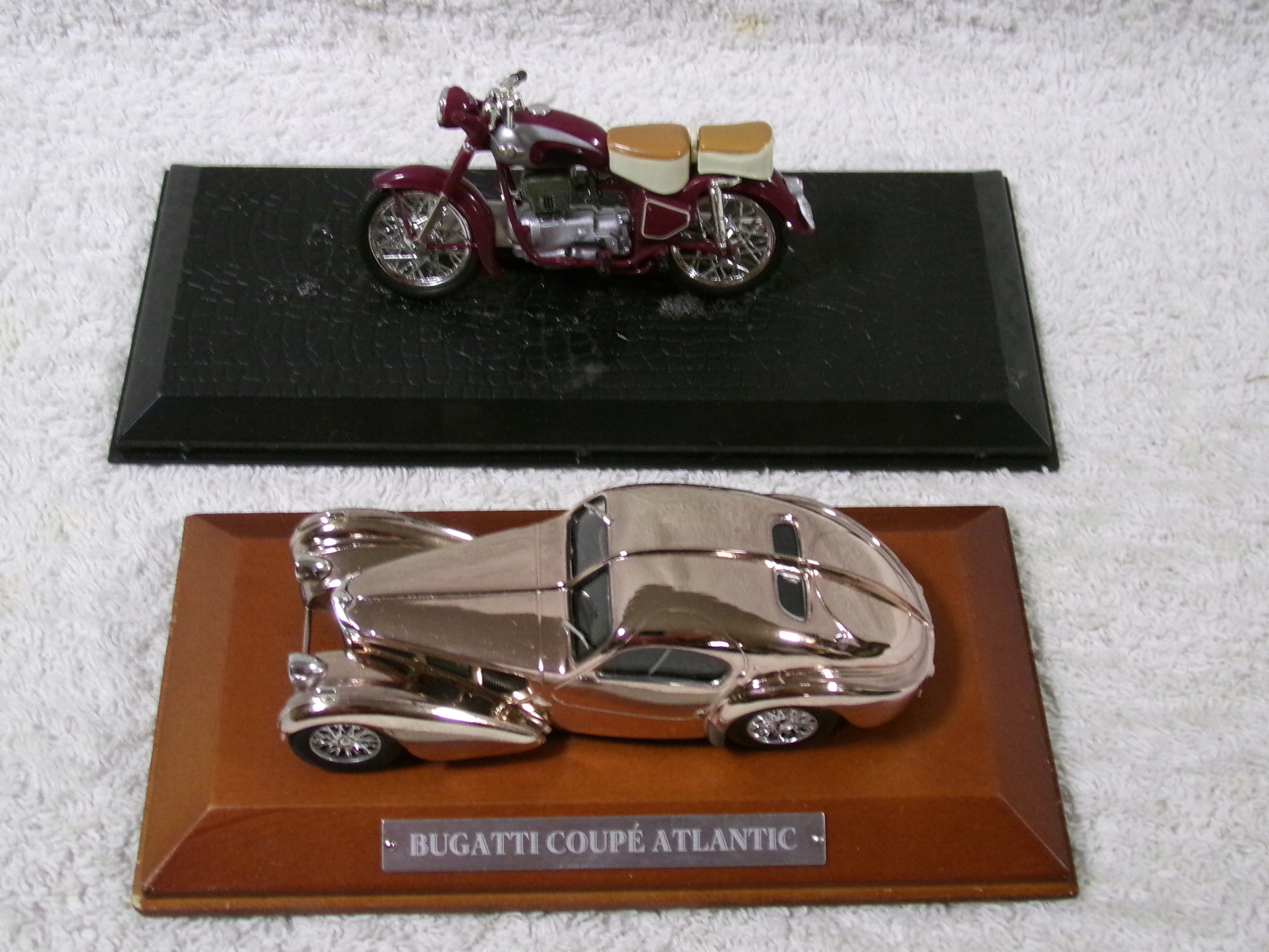 SIMSON 425 S И BUGATTI COUPE ATLANTIC с размерами двигателя 8х4,5 см и 10х4 см, массой 214 грамм. Очень хорошее состояние, без повреждений, но двигатель необходимо приклеить к основанию.