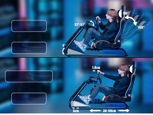 - Регулируемое гоночное кресло (диапазон 160 °) - от положения прямо до расслабления