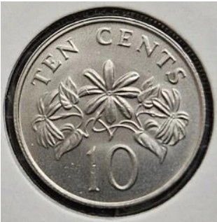 *SINGAPUR [0792]*10 Centów 1989 (Ten Cents) Rośliny: Calliandra surinamska