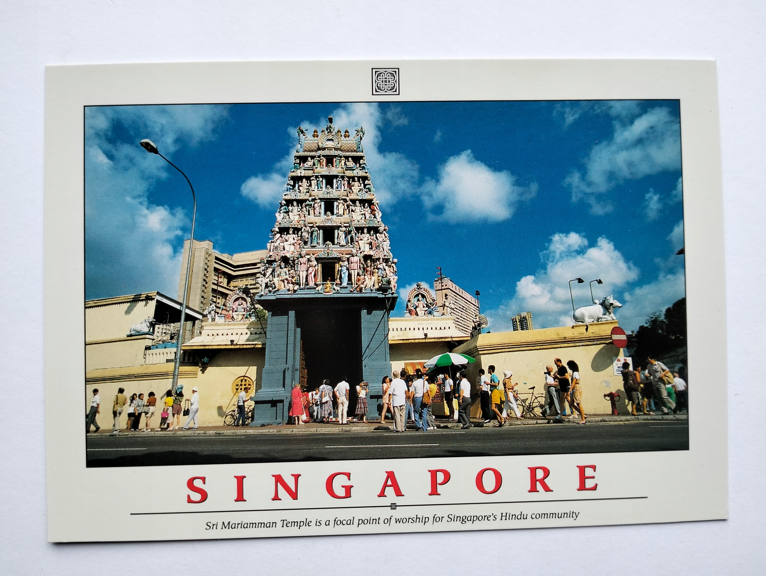 Сингапурская открытка - индуистский храм Шри Мариамман - индуистская община
