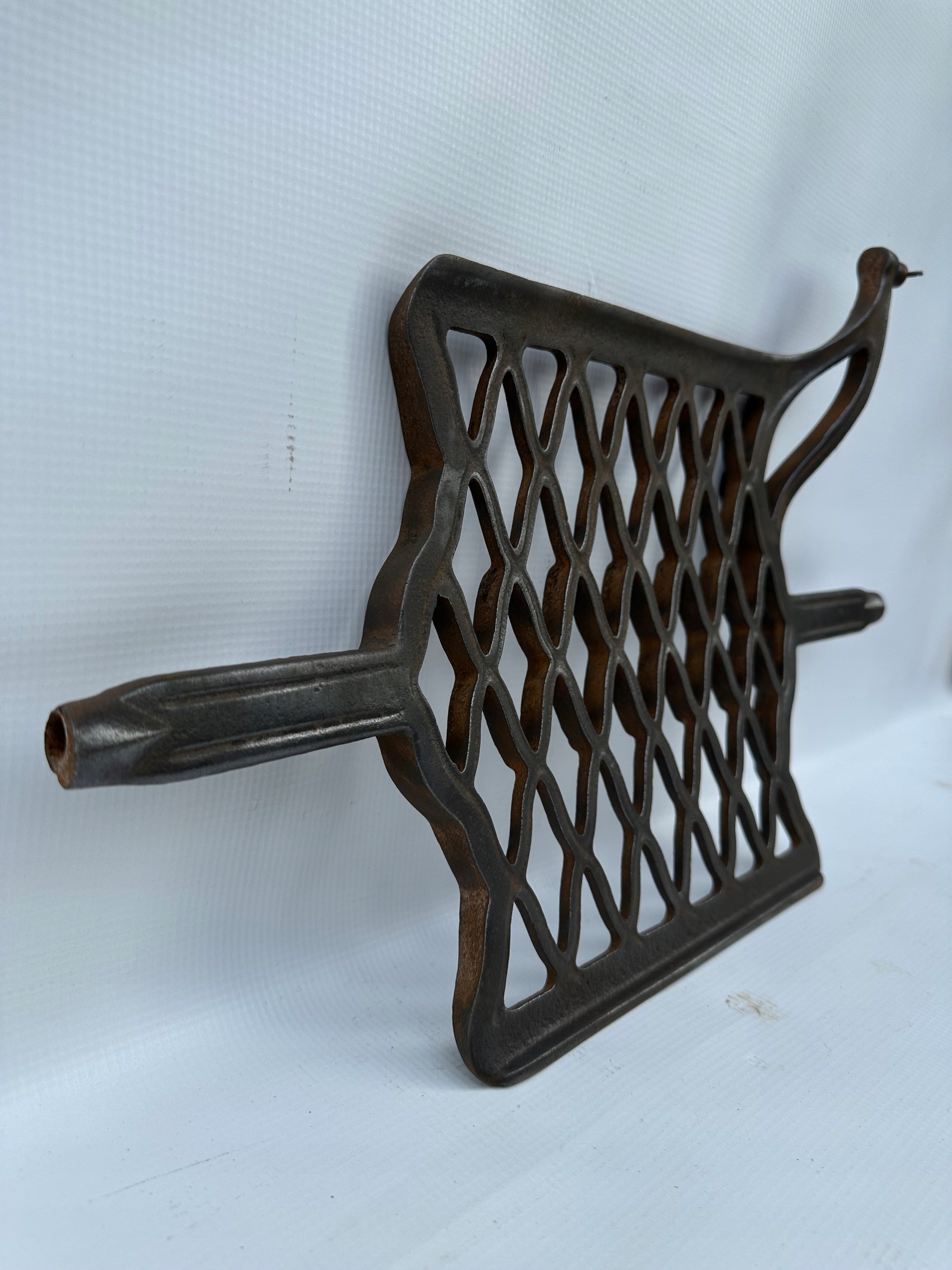 Предмет продажи — чугунная педаль привода от базы старой швейной машины. Интересный узор, красиво оформлен.