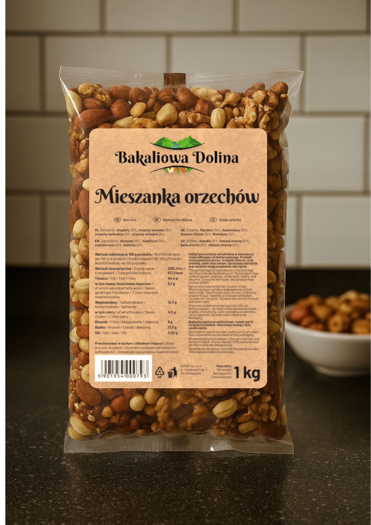 Ореховая смесь – это идеальное сочетание вкуса и пищевой ценности. Миндаль, грецкие орехи, кешью, фундук или бразильский орех – каждый из них обладает разными свойствами, а вместе они создают вкусную и чрезвычайно питательную композицию. Это идеальный перекус на работе, в школе, на прогулке или в путешествии, а также отличное дополнение к десертам, овсянке или салатам.