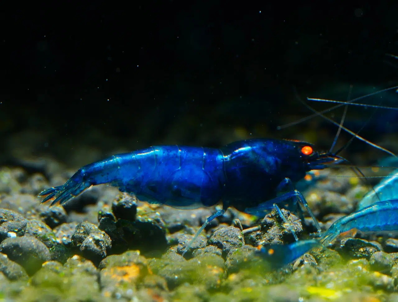 Креветки Blue Devil Orange Eye — одна из самых впечатляющих разновидностей Caridina, доступных в аквариумах. Их доспехи восхищают глубоким, насыщенным оттенком синего, который в сочетании с выразительными оранжевыми глазами создает потрясающий контраст. Уникальный окрас делает этих креветок настоящим украшением любого аквариума.