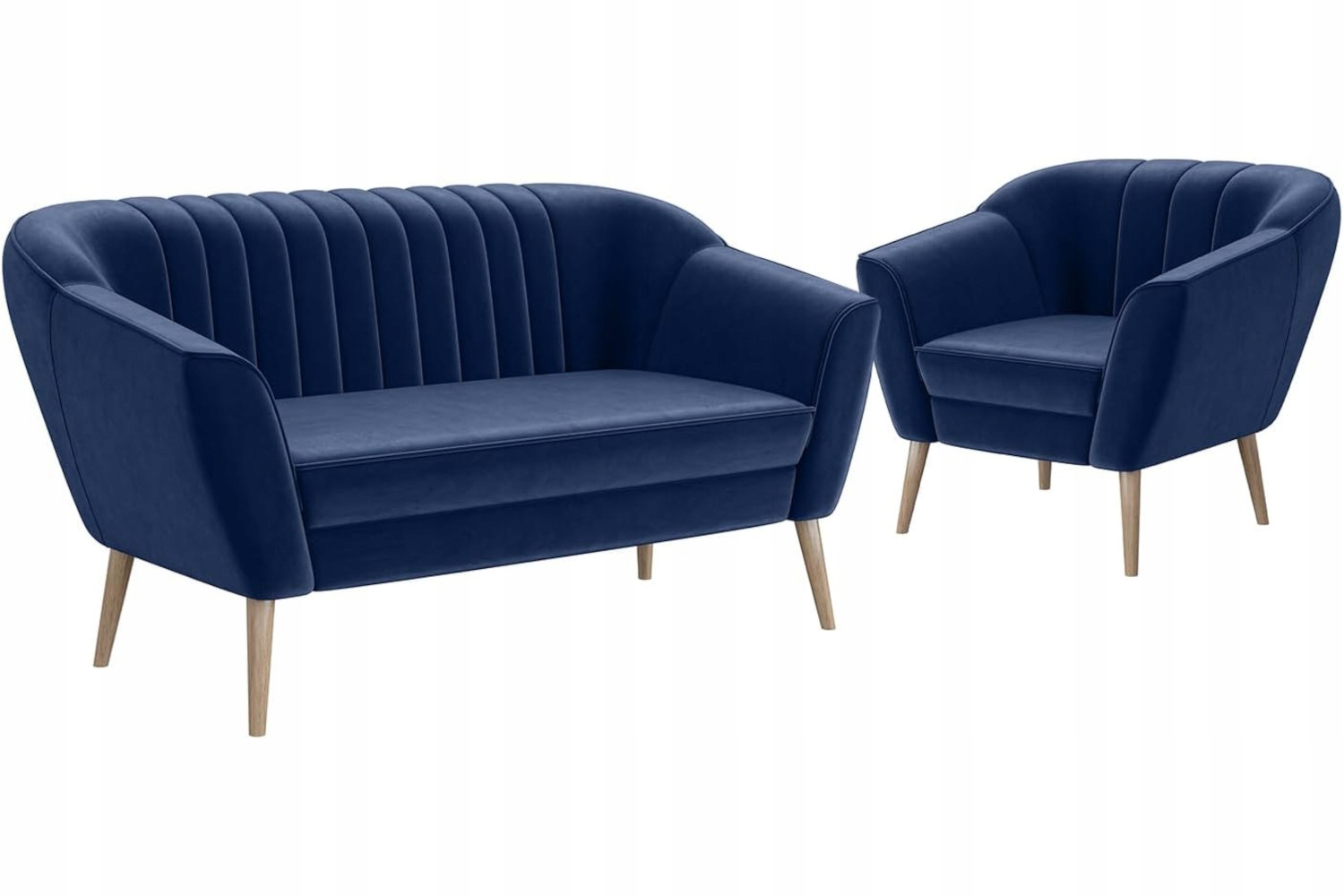 Синій комплект диванів і крісел 2+1+1 на дерев'яних ніжках scandi KAMO