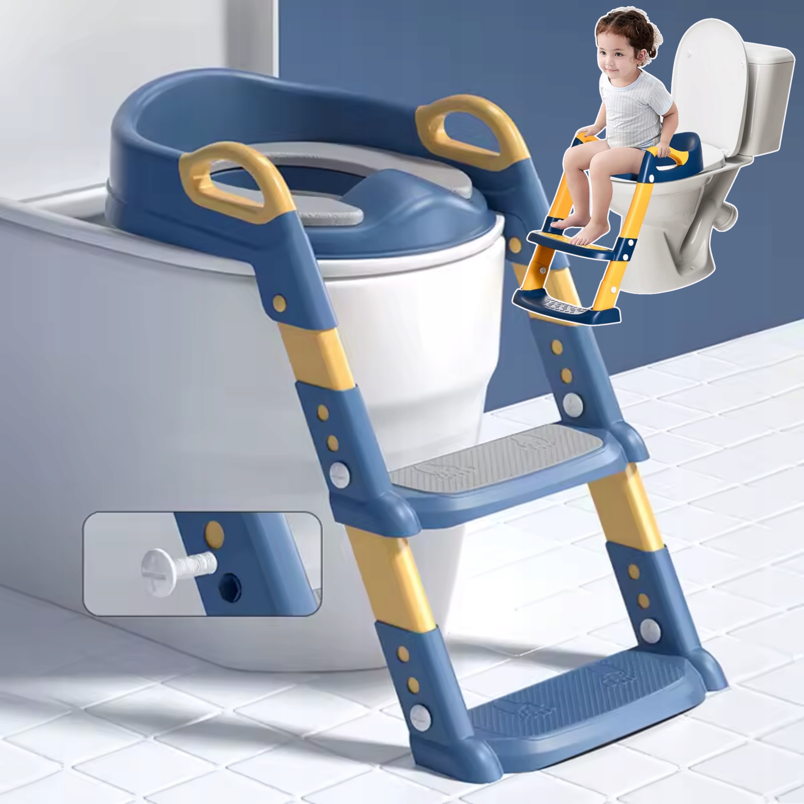 Синий туалетный крышку с мягким наложением лестницы для детей