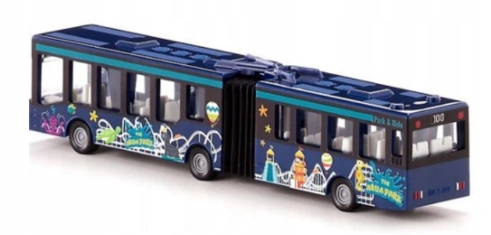 Сочлененный автобус из металлических и пластиковых деталей повторяет внешний вид настоящего транспортного средства. Резиновые шины и центральный шарнир позволяют автобусу свободно поворачивать. Идеальная игрушка для маленьких водителей.
