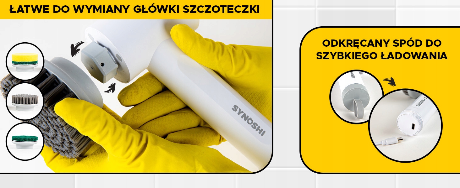 СИНОШІ | Elektryczna Szczotka do Czyszczenia, Bezprzewodowa, 3 Adaptery